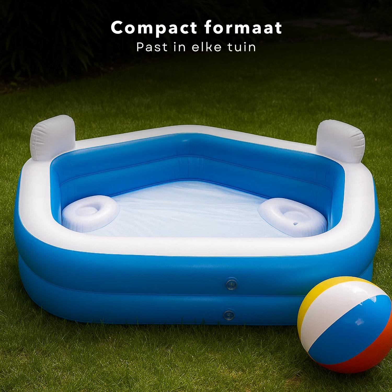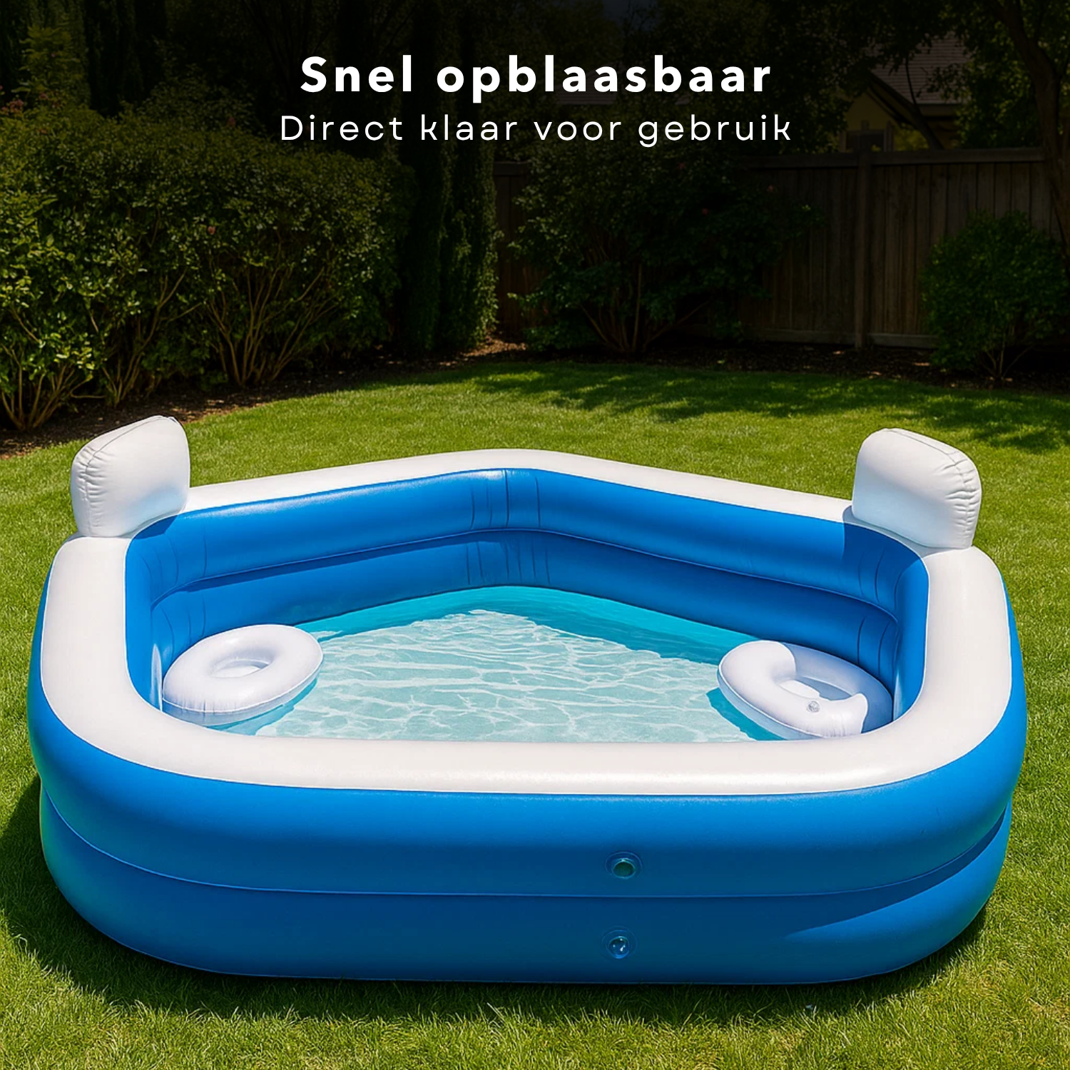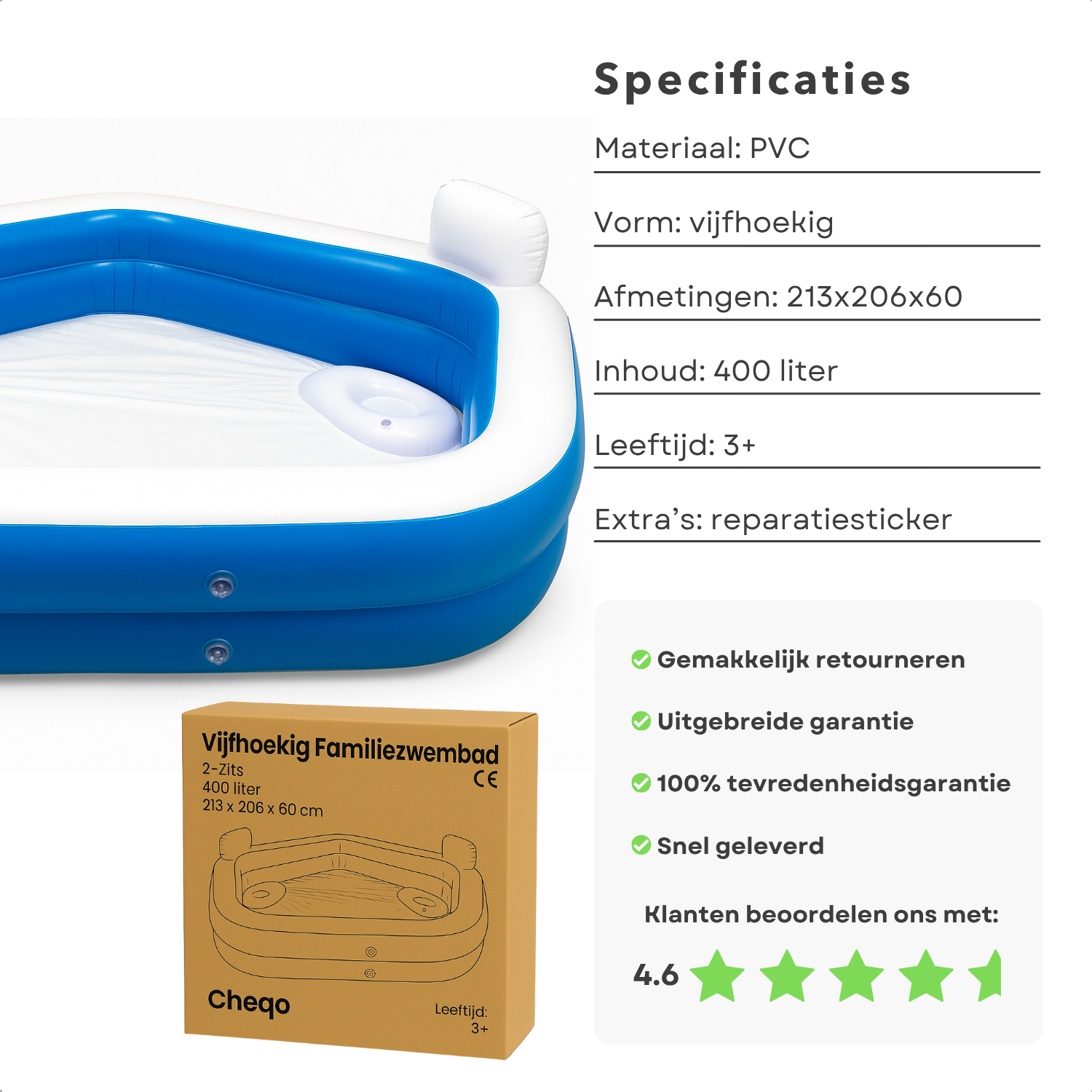 Cheqo® Vijfhoekig Opblaasbaar Familiezwembad - Zwembad - Opblaasbad - PVC - Bad Met Loungestoelen en Bekerhouders