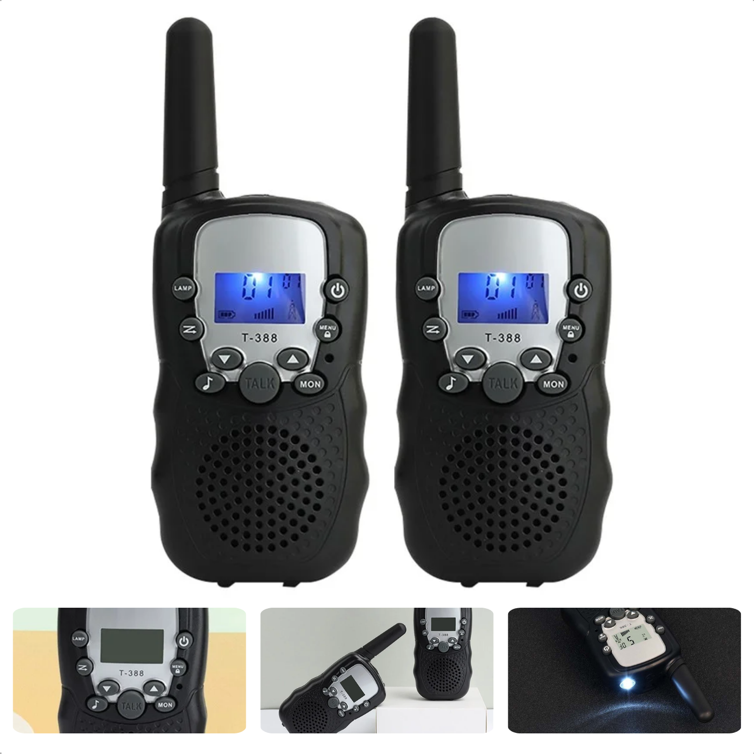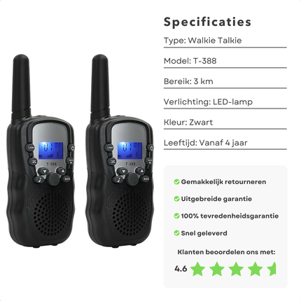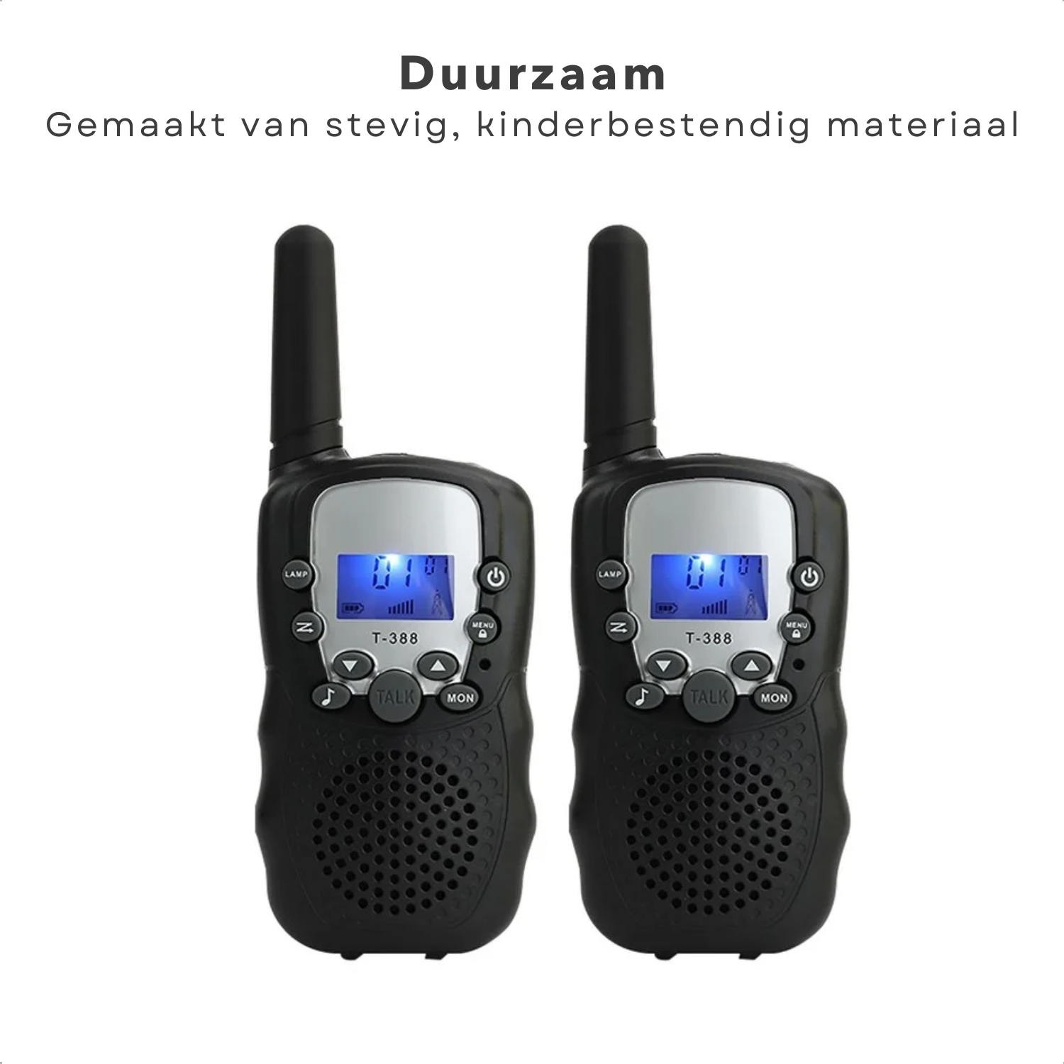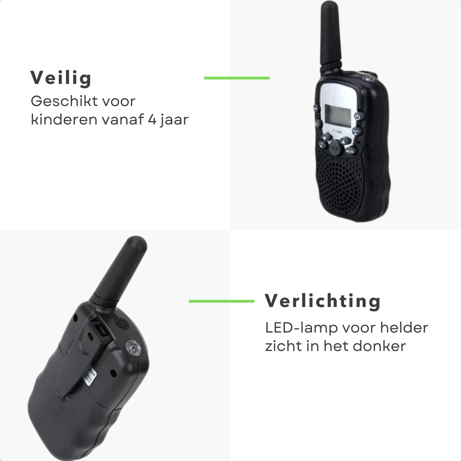 Cheqo® Walkie Talkie Set voor Kinderen - Portofoon - Lange Afstand 3 km - LED Licht - Zwart