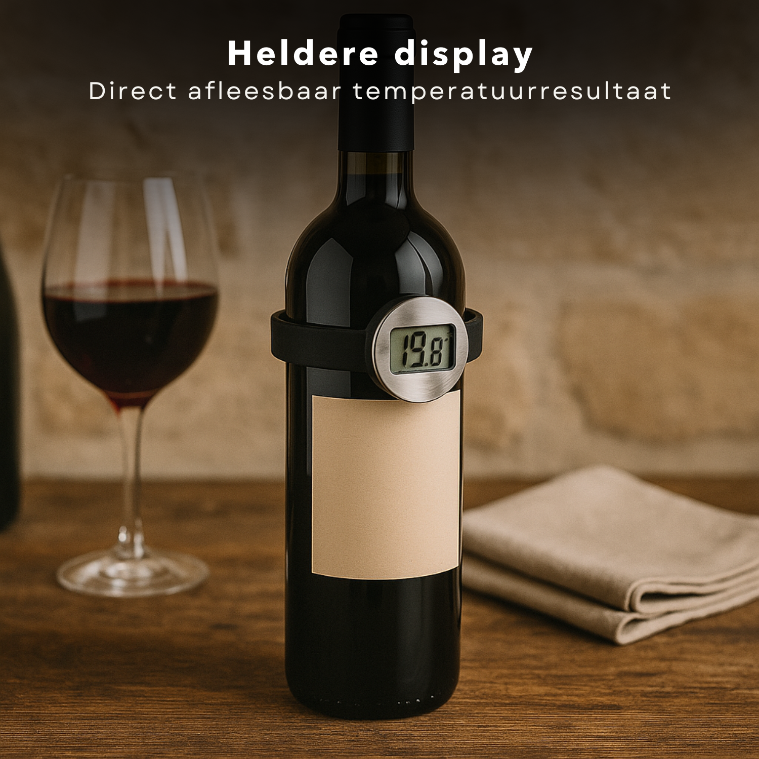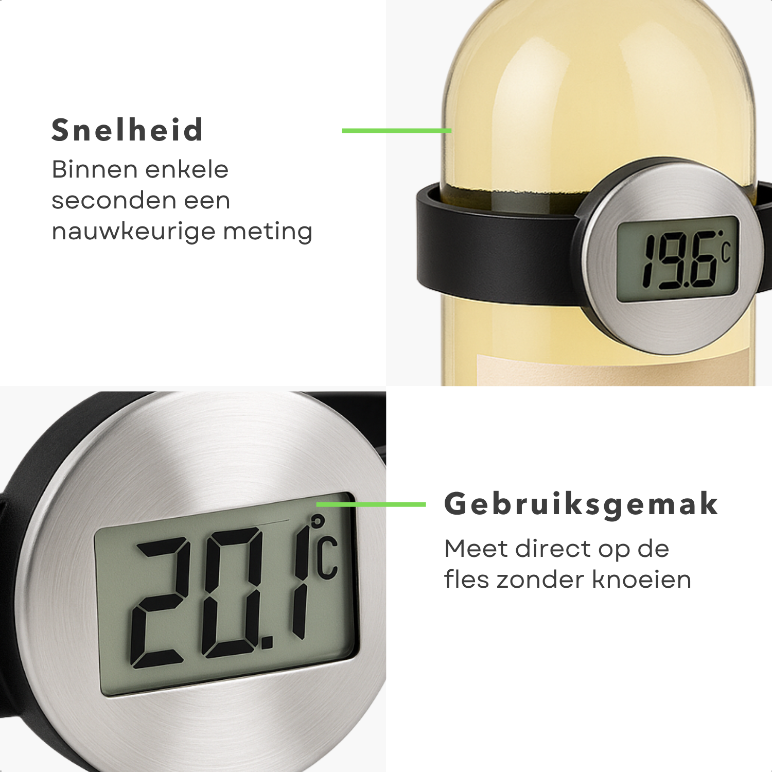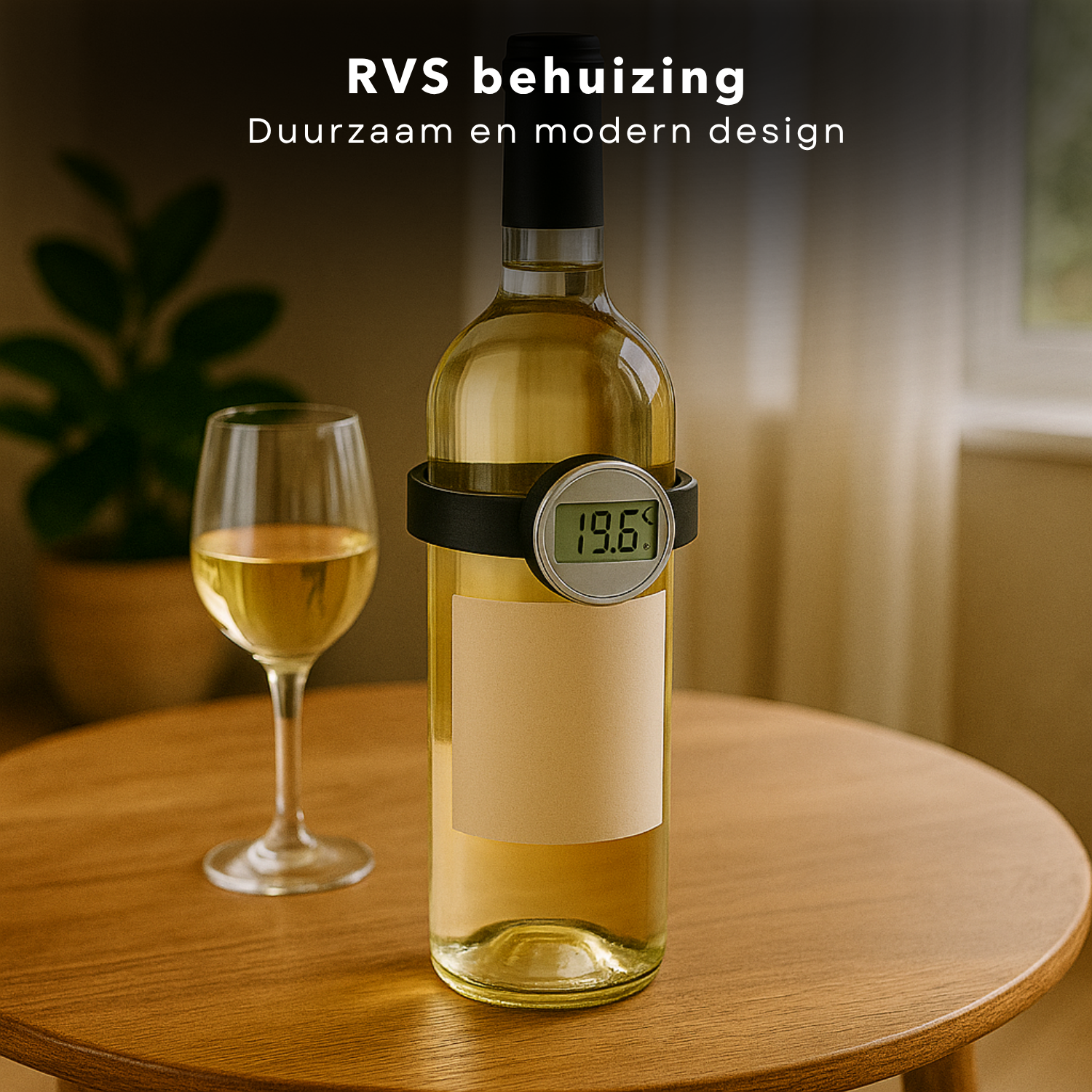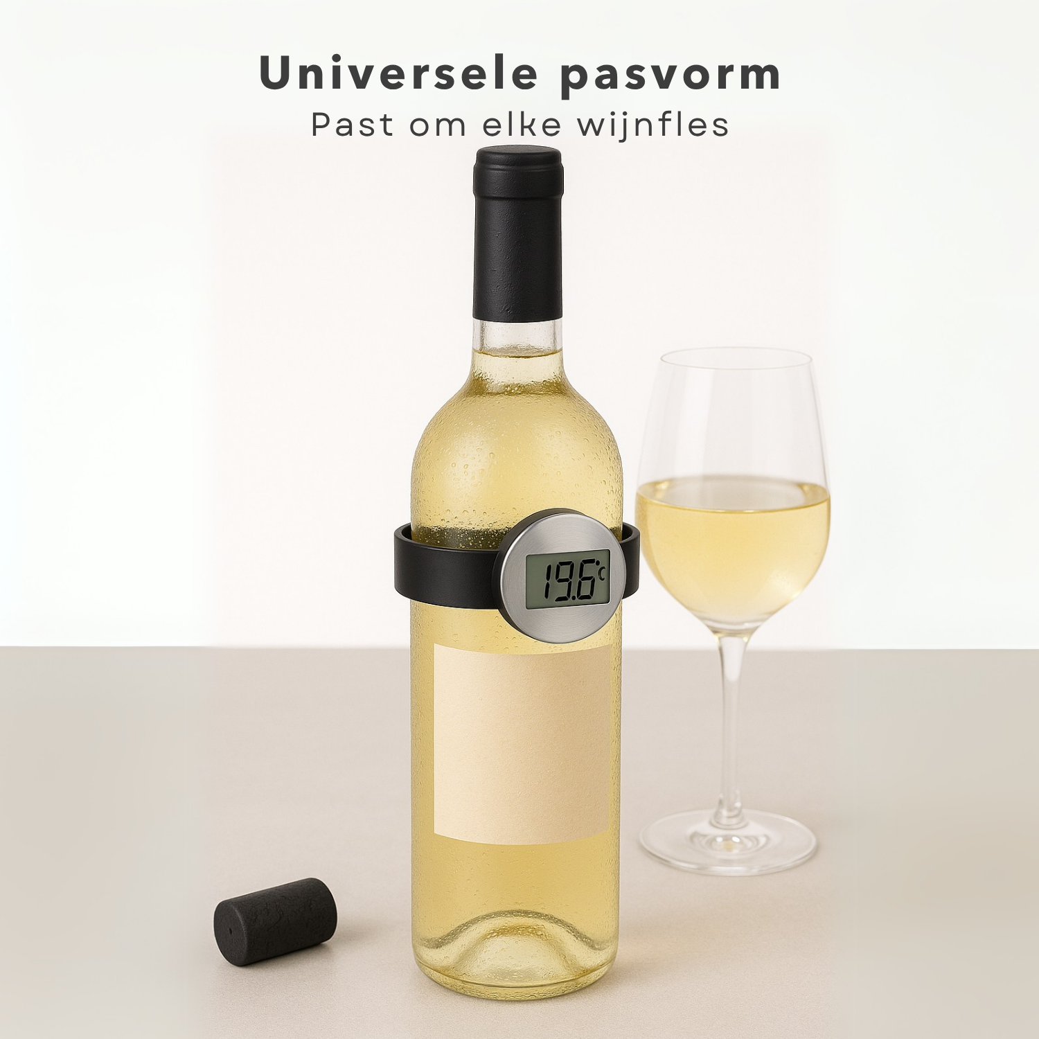 Cheqo® Wijnthermometer RVS - Wijn Thermometer Digitaal - Digitale Wijn Temperatuurmeter - Voor Alle Wijnflessen