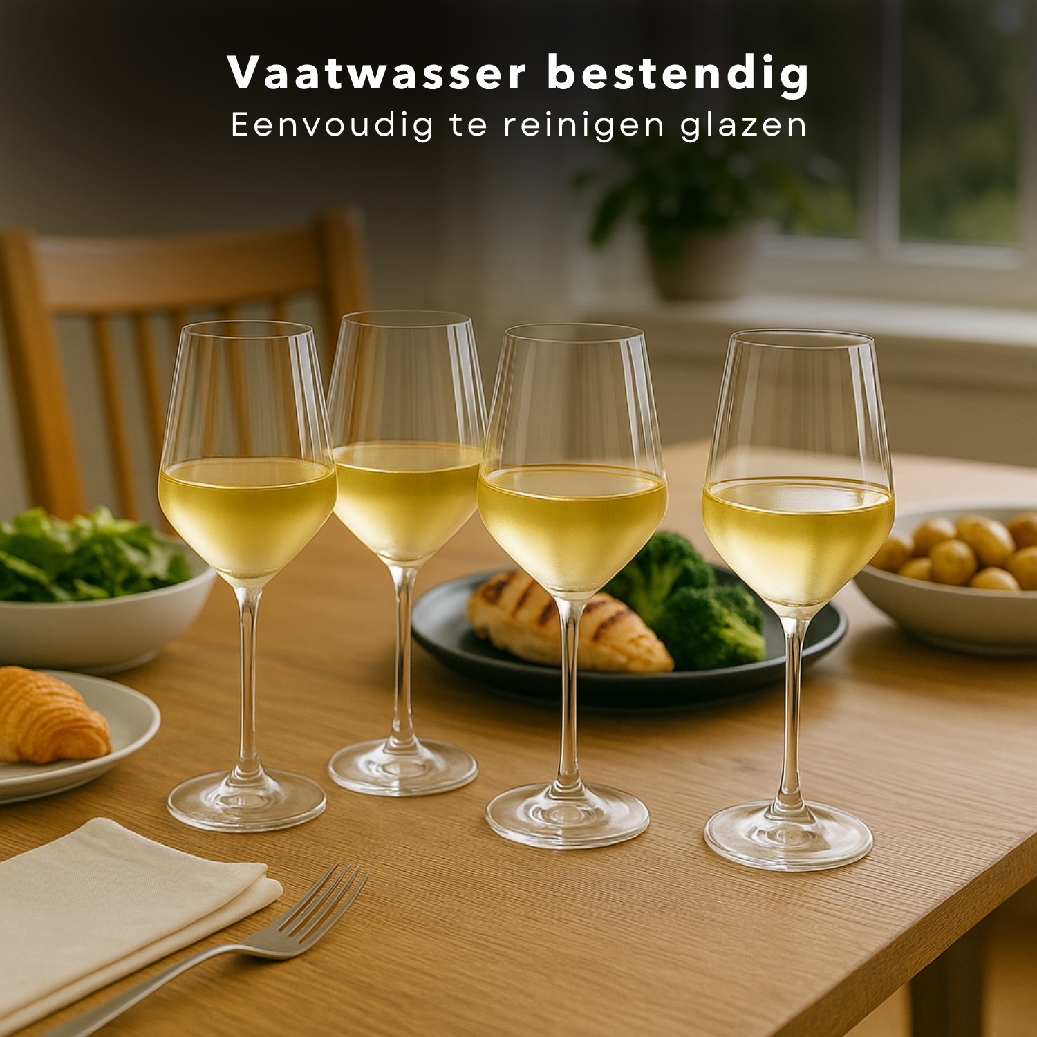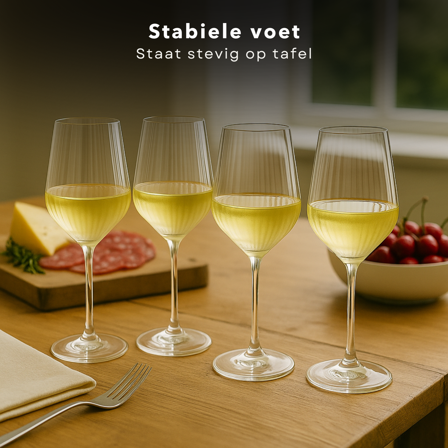 Cheqo® Witte Wijnglazen Set - 38 cl - Elegante Glazen voor Witte Wijn - Stevige Voet - Wijnglas Set - Glas