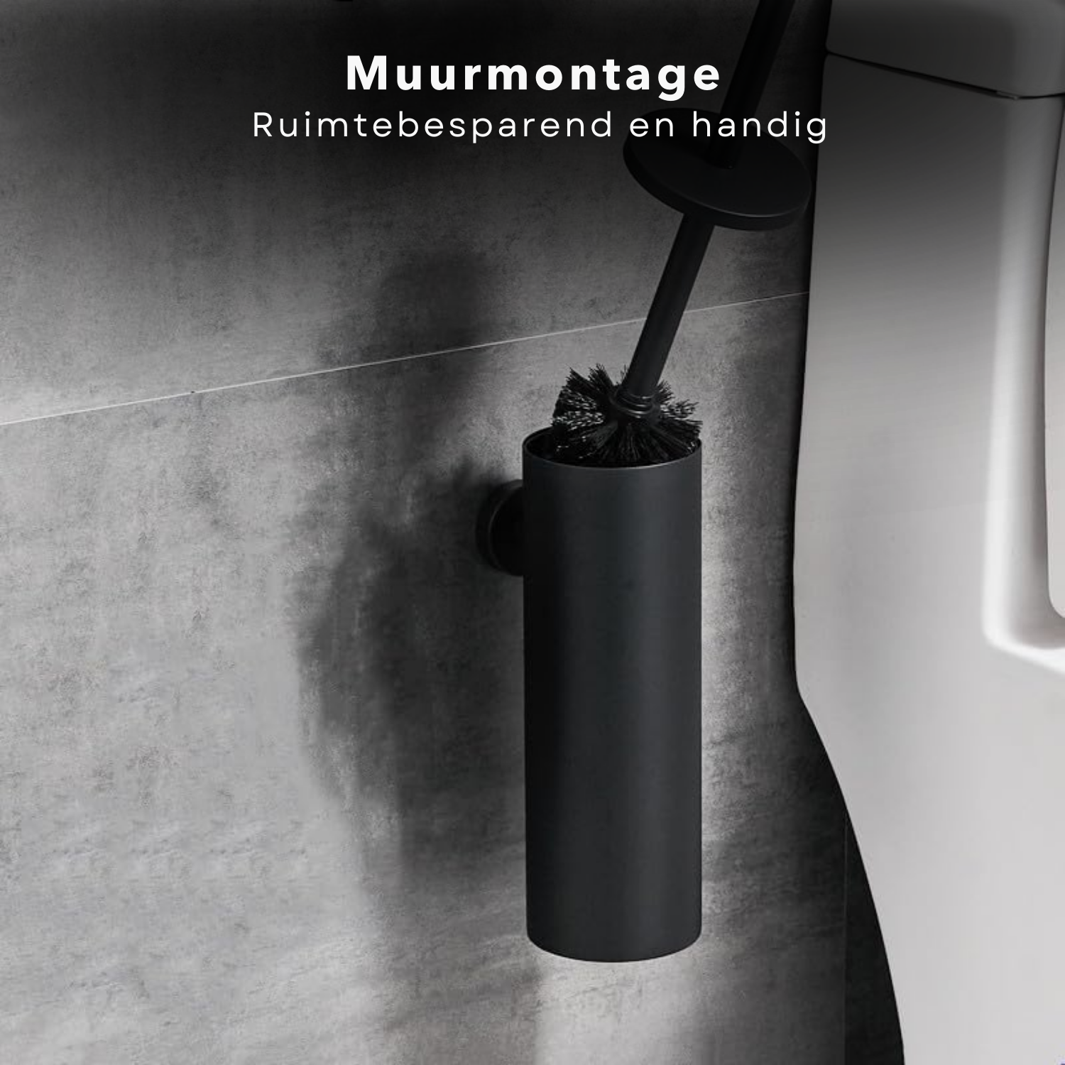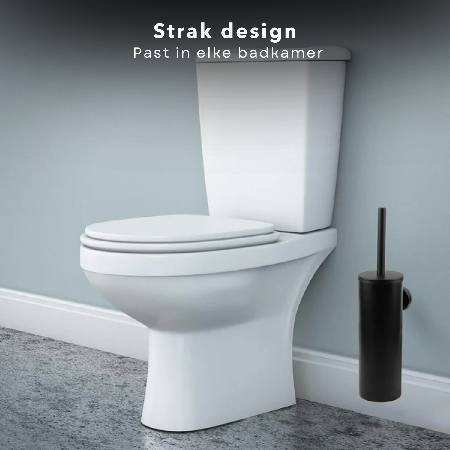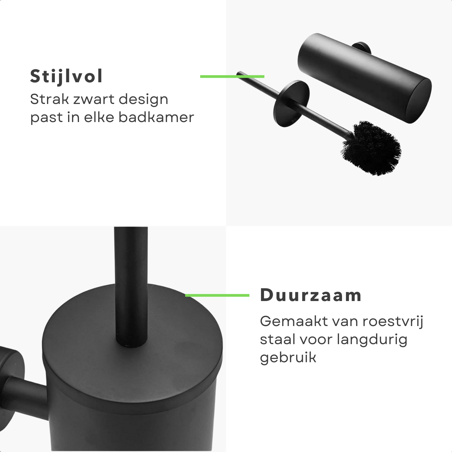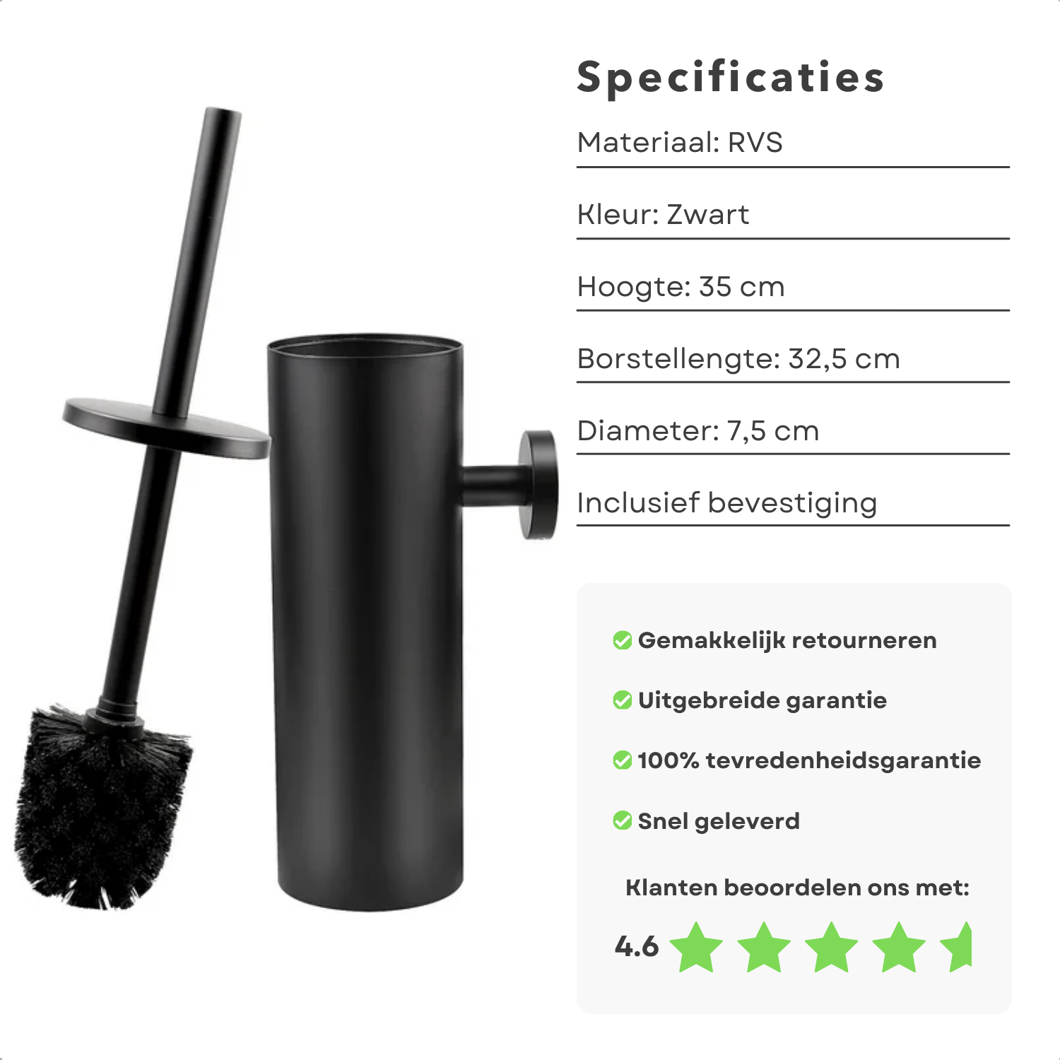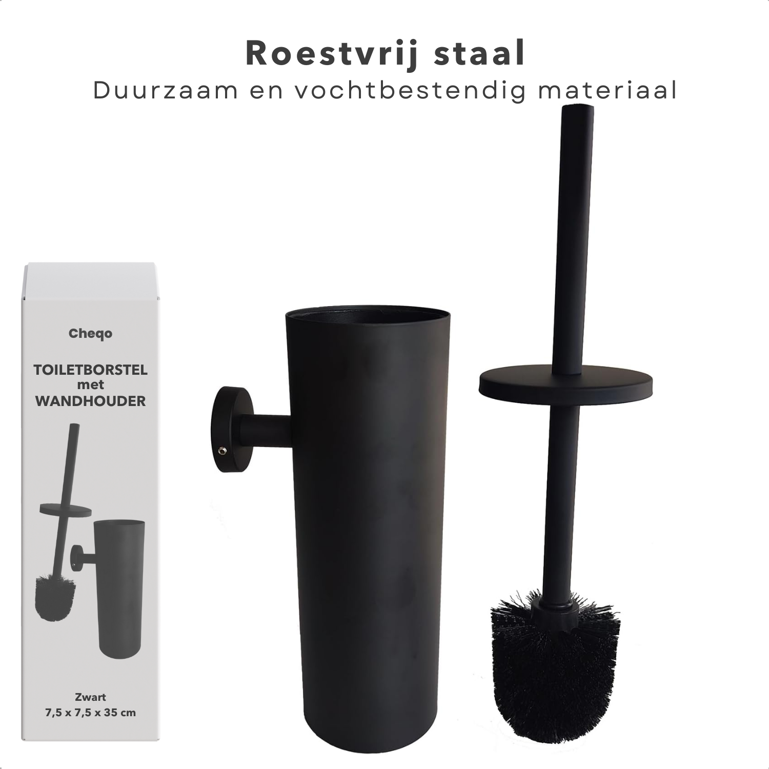 Cheqo® Zwarte Toiletborstel Met Wandhouder - Wc Borstel - Toilet Borstel Houder - RVS - 35 cm Hoog - Moderne