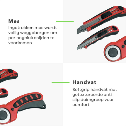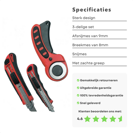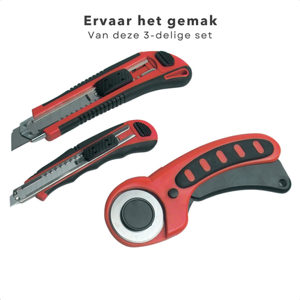 Cheqo® 3-Delige Universele Hobbymessen Set - Stanleymes Set - 9mm & 18mm Afbreekmes, Rondsnijmes - Softgrip, Zelfsluitend, Vergrendeling - Ideaal voor Behang, Zachte & Flexibele Materialen