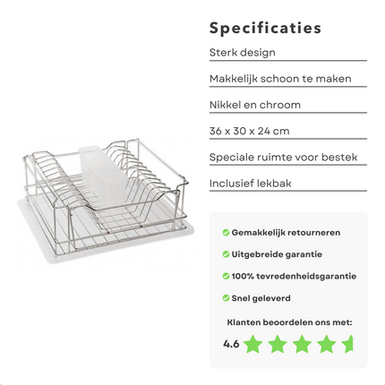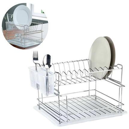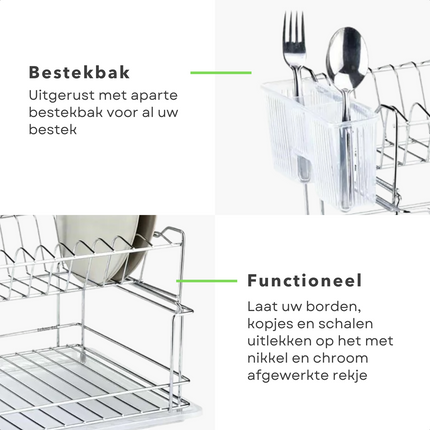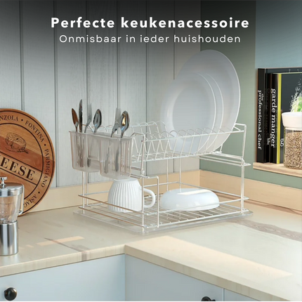 Cheqo® Afdruiprek met Lekbak - Inclusief Bestekbak - 2 Laags - Afwas - Afdruip Rek - 36x30x24cm