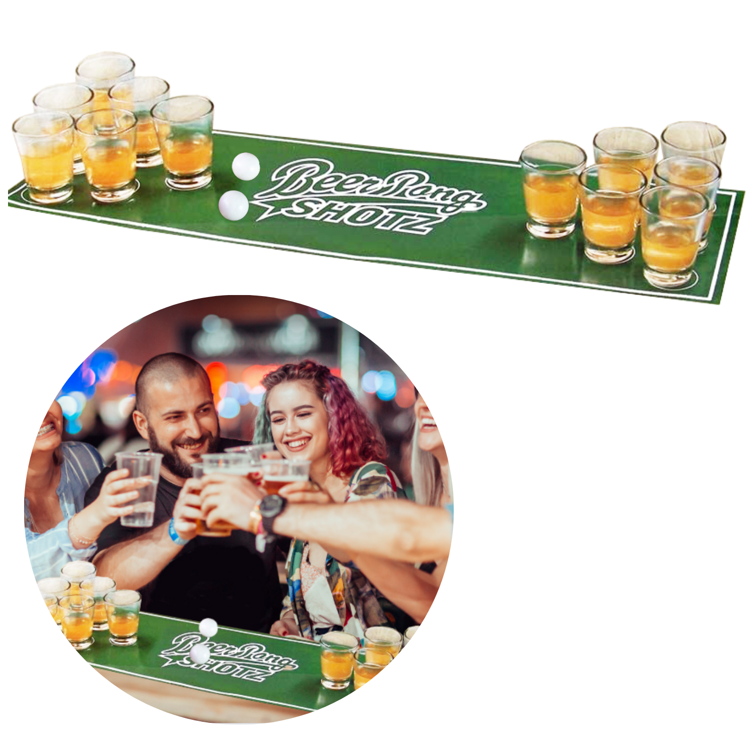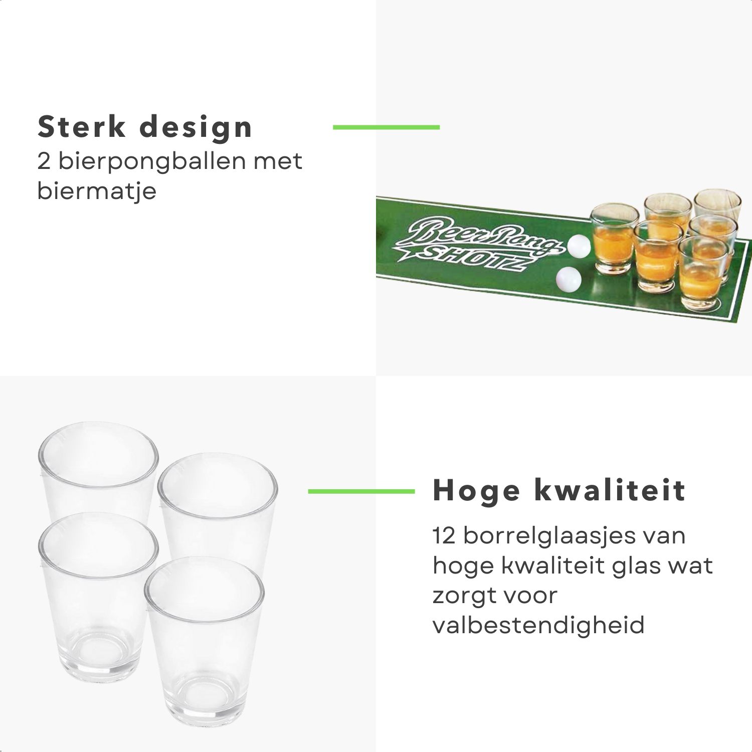Cheqo® Beer Pong Spel - Drankspel - Bierpong Speelmat - Biermat - Inclusief 12 Shotglazen - Shotglaasjes - Drankspelletje