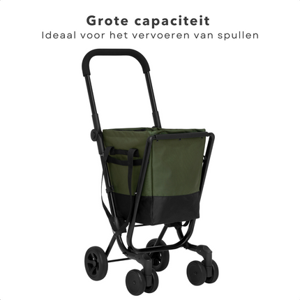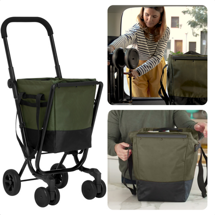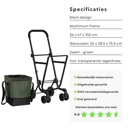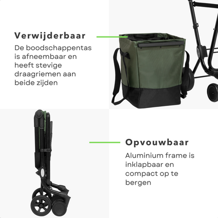 Cheqo® Boodschappentrolley 40L - Boodschappenwagen - Afneembare Boodschappentas - Verstelbaar - Stevig Frame - Met Achtervak, Reflectoren en Regenhoes - 36x47x102cm - Groen
