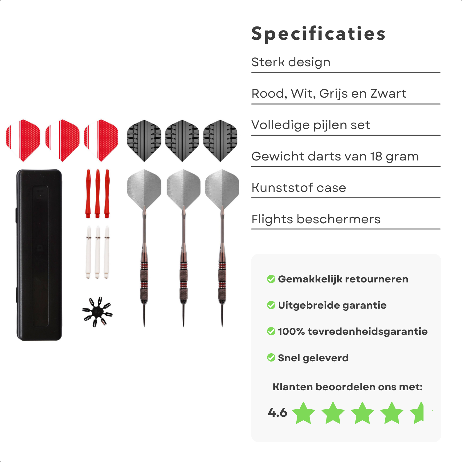 Cheqo® Dartpijlen Set - Darts van 18 Gram - 3 Pijlen - Dartset - Nikkel - Professioneel - Inclusief Accessoires - In Luxe Opbergcase