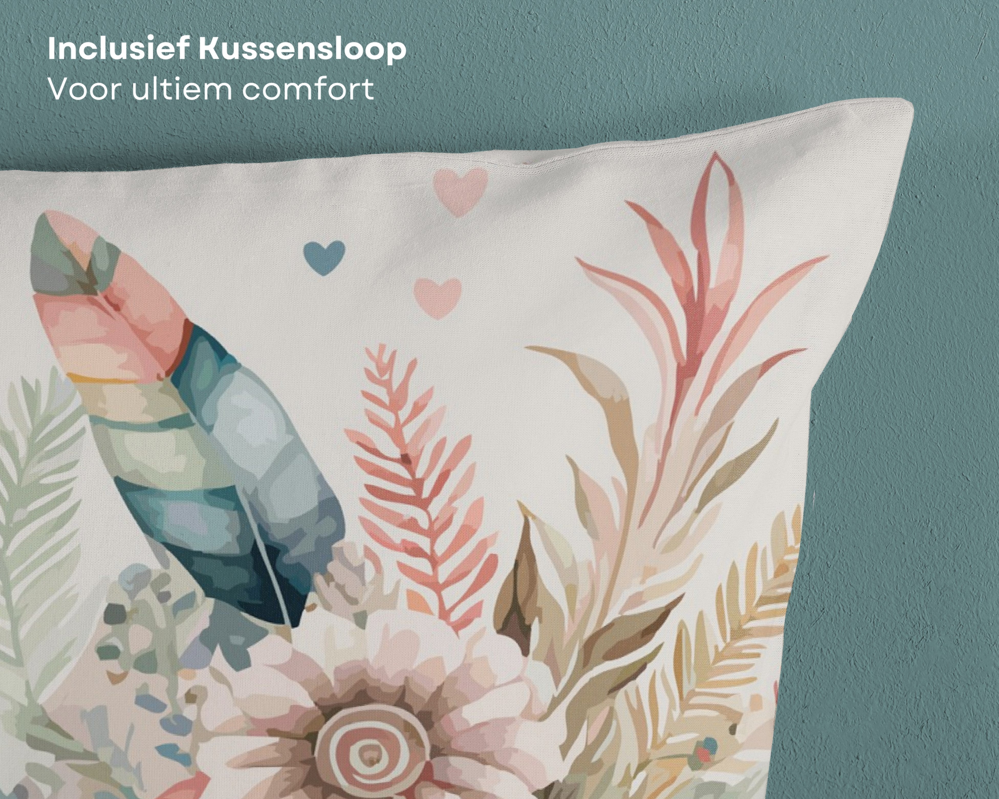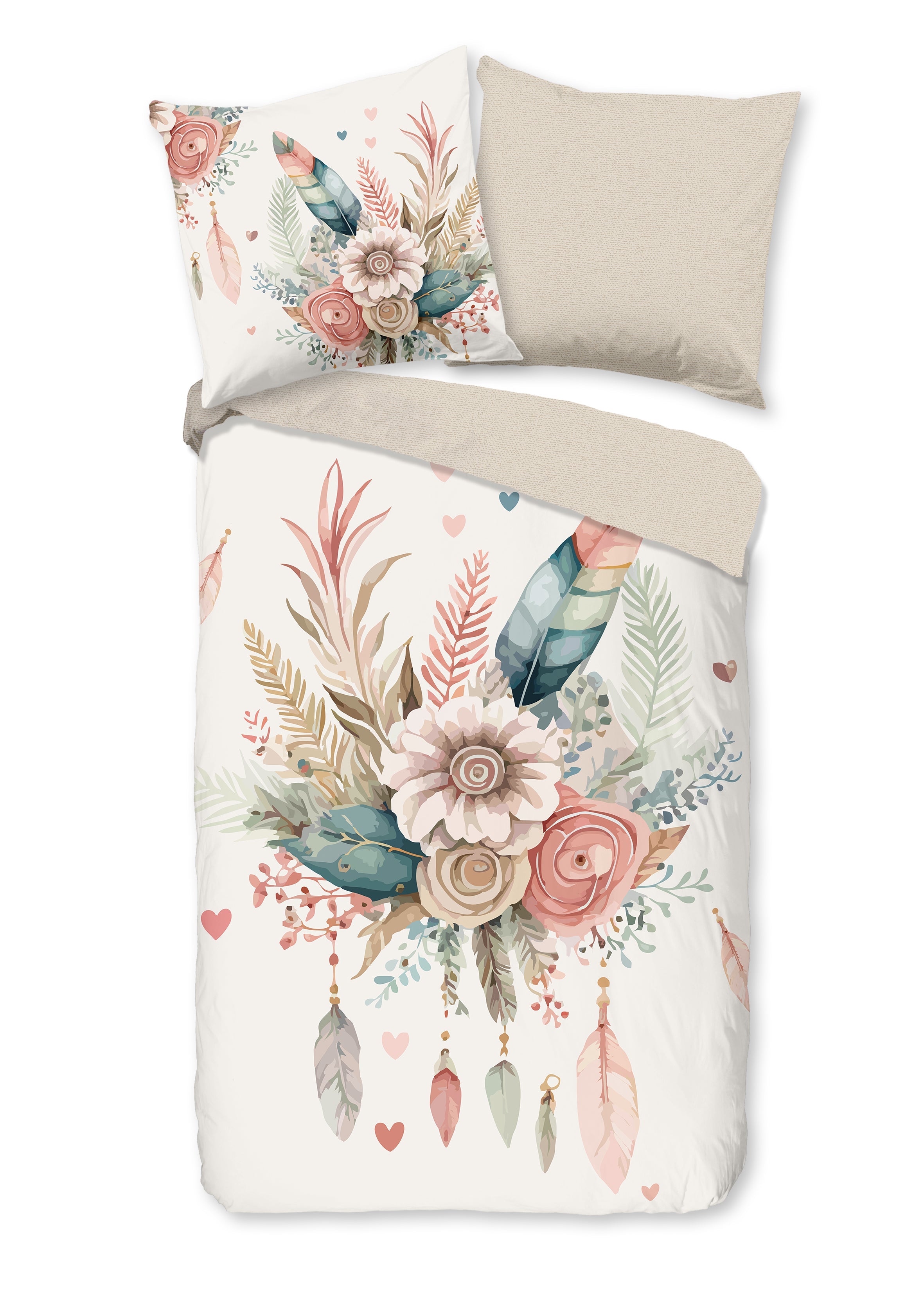 Dekbedovertrek 140x200/220 cm - Bloemen en Veren Print - Ecru - 1 Persoons - 100% Katoen - Oeko-Tex Gecertificeerd