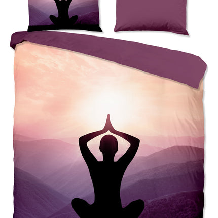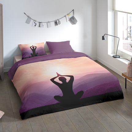 Dekbedovertrek 200x220 cm - Yoga Silhouet en Bergen Print - Paars - 2 Persoons - 100% Zacht Microfiber