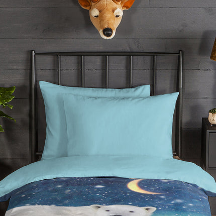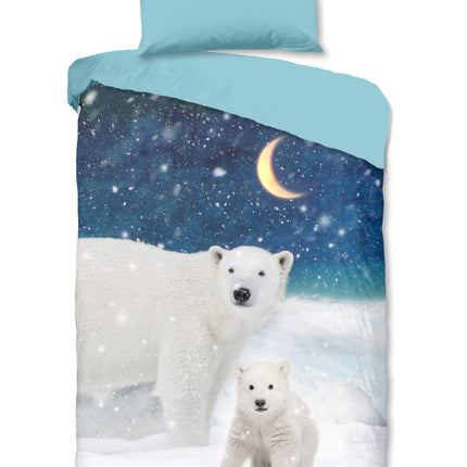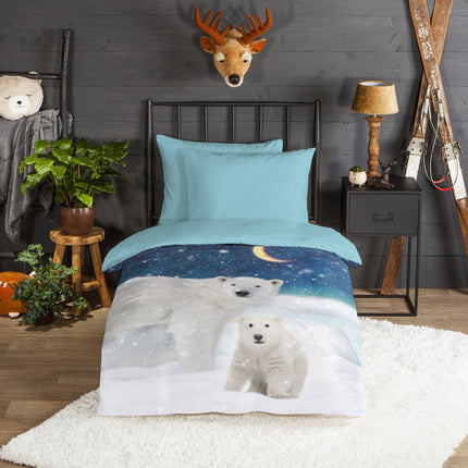 Dekbedovertrek voor Kinderen - 140x200 cm - IJsberen en Sneeuw Print - Blauw/Wit - 1 Persoons - 100% Flanel Katoen