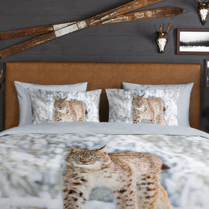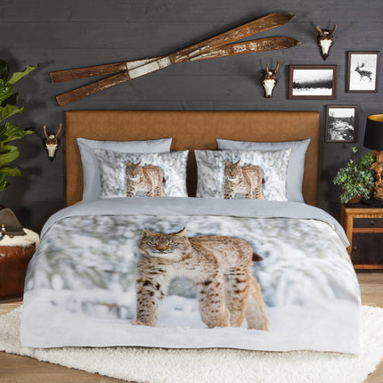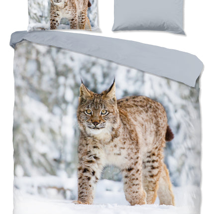 Flanellen Dekbedovertrek 240x220 cm - Lynx Print - Winterlandschap - Donkergrijs - 2 Persoons - 100% Flanel Katoen