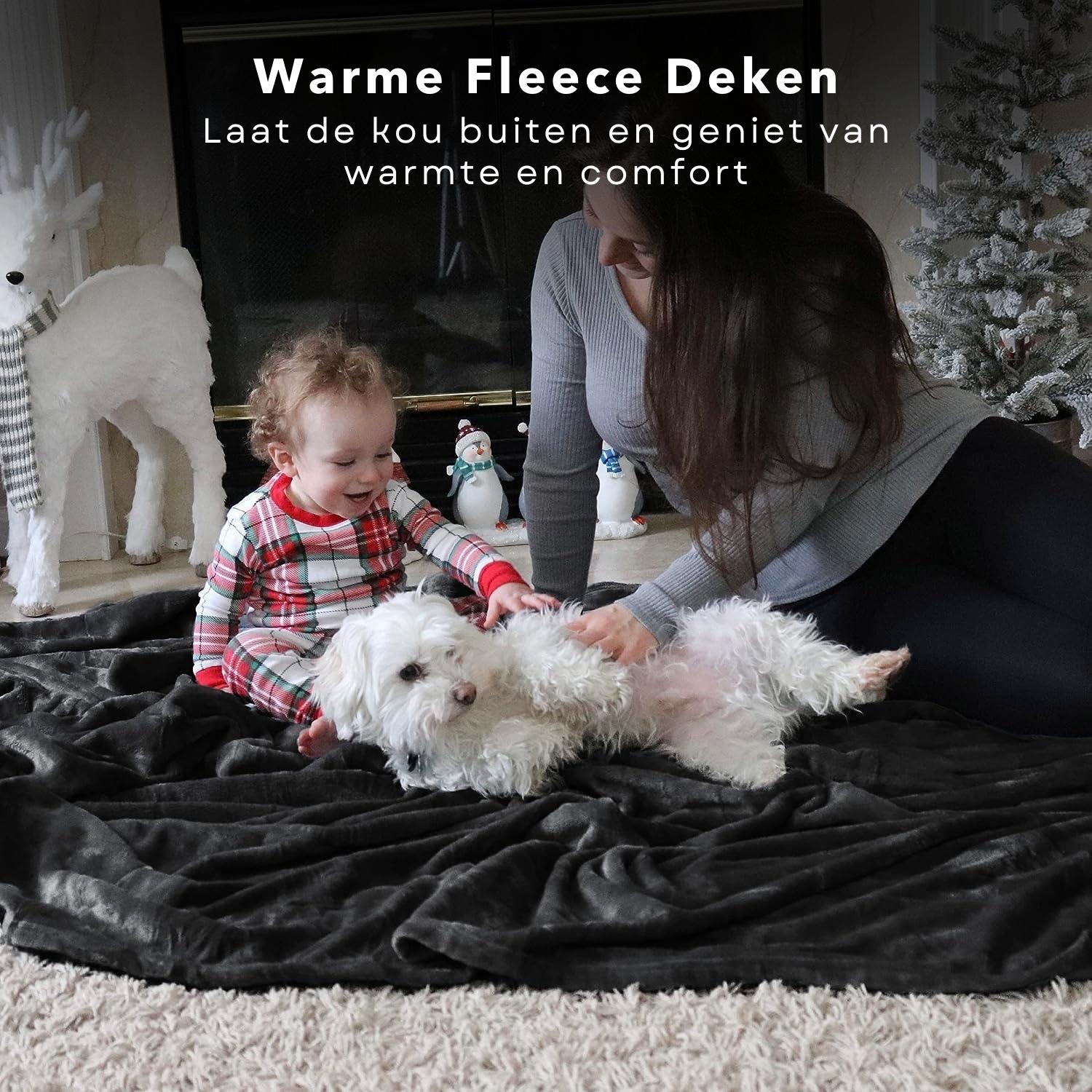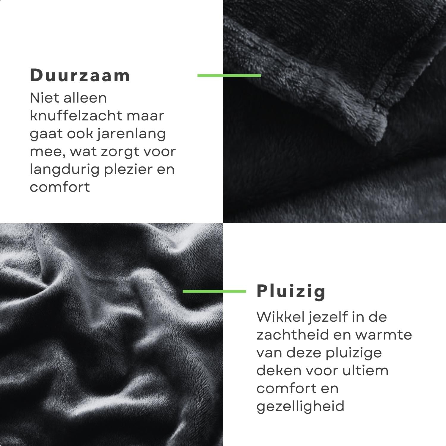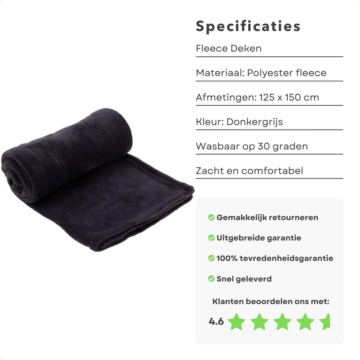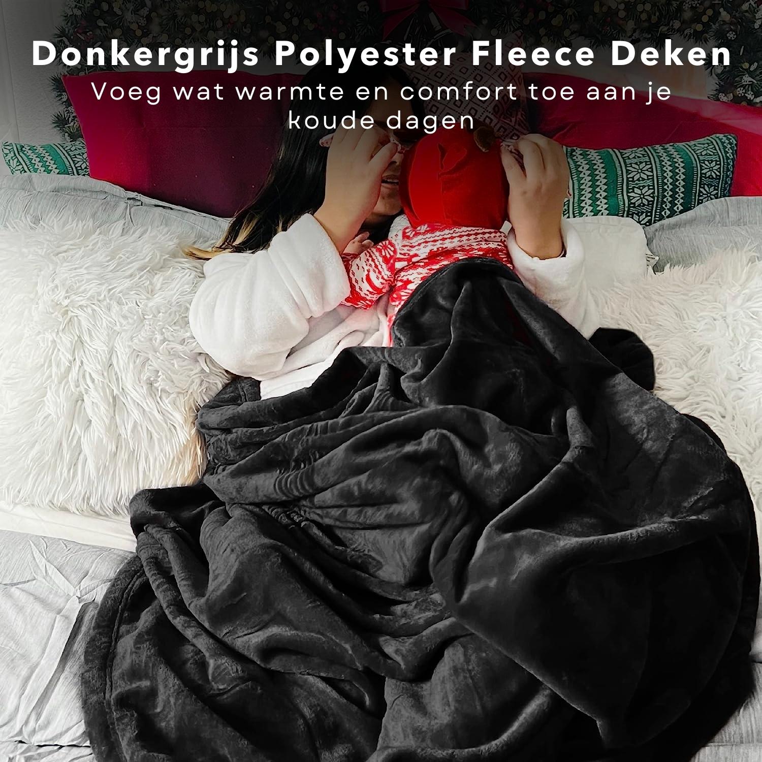 Cheqo® Fleece Deken - Groot Formaat - Wasbaar - Donkergrijs - Warmtedeken - Bovendeken - 125 x 150 cm - Polyester Fleece - Winterdeken - Warme Deken Voor Woonkamer - Fleece Plaid