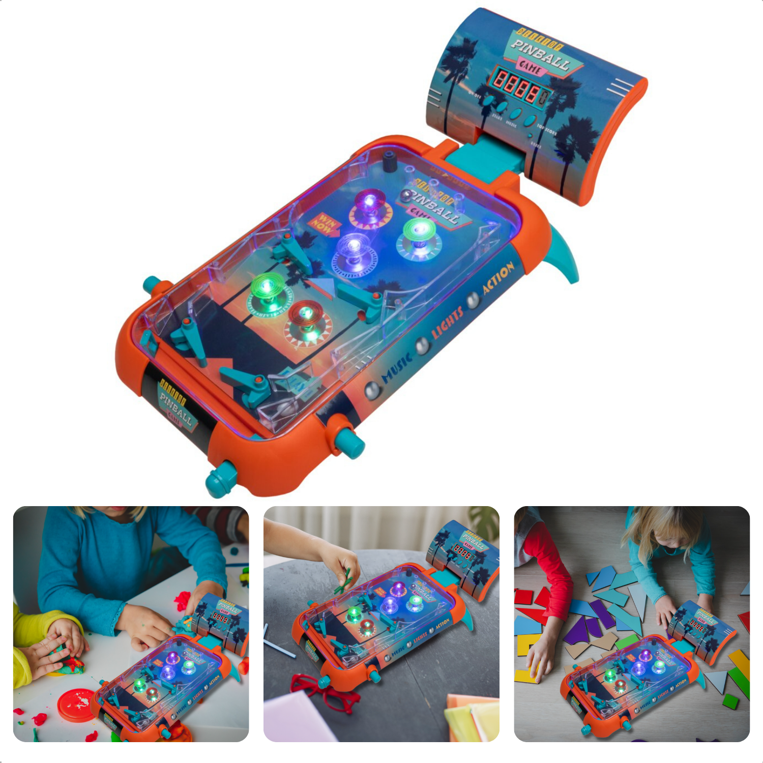 Cheqo® Flipperkast - Pinball Machine - 53x26 cm - Tafelmodel - Kunststof - 3 LR14 Batterijen - Muziek & Licht - 750 gram - Ideaal voor op tafel - Batterijen niet inbegrepen - Voor Kinderen - Voor Volwassenen - Cadeau - Tafelspel - Spelletje