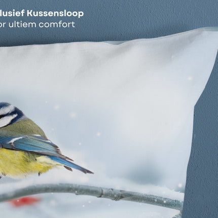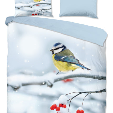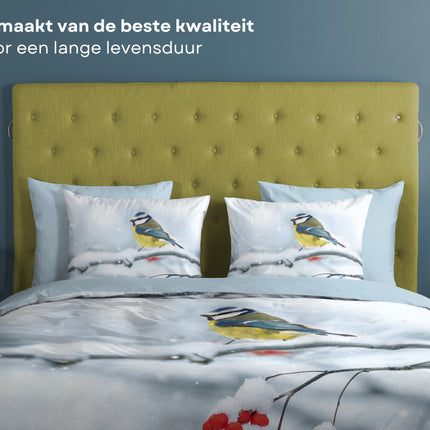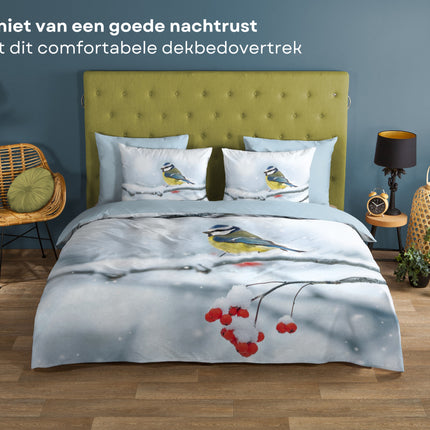 Katoenen Dekbedovertrek 200x220 cm - Winter Vogel en Sneeuw Print - Multicolor - 2 Persoons - 100% Zacht Katoen