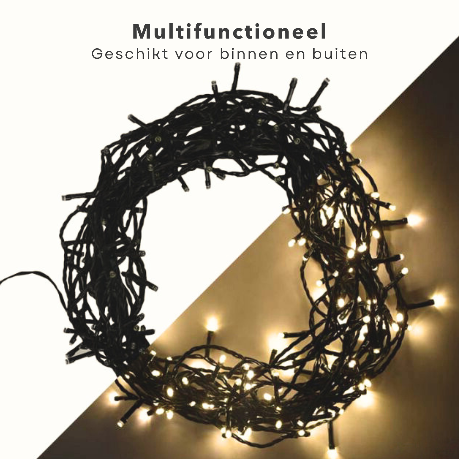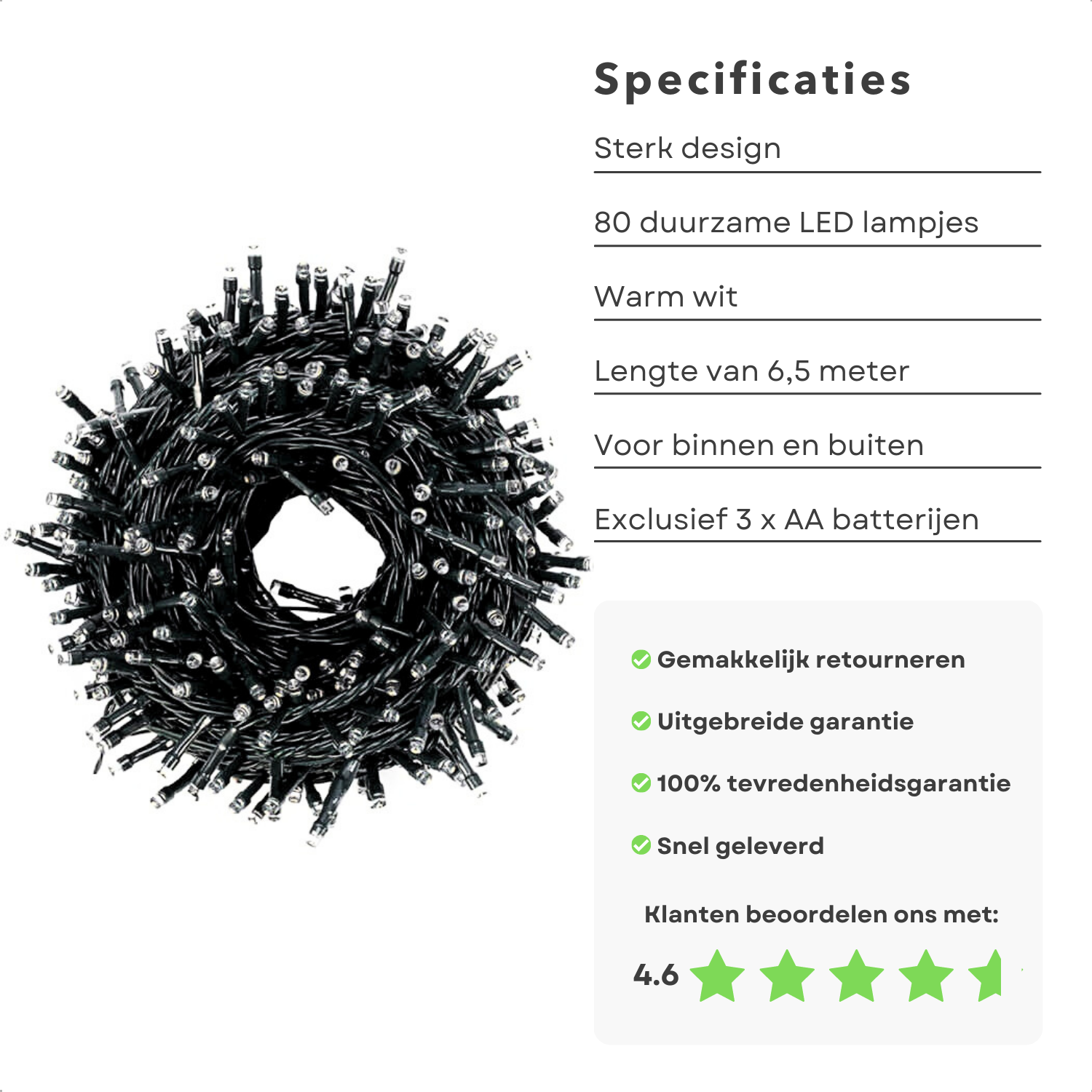 Cheqo® Kerstboomverlichting - Kerstverlichting LED - 80 LED - Warm Wit - Op batterij - 8 Lichtfuncties - Dual-Timer - 6m lengte - IP44 spatwaterdicht - 3x AA batterijen - 3V