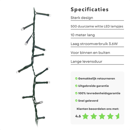 Kom in de kerstsferen met deze Cheqo kerstboomverlichting. Met 500 witte LED's, zullen deze lichtjes zeker wat vrolijkheid toevoegen aan... Lees meer