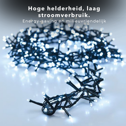 Cheqo® Kerstboomverlichting - Micro Clusterverlichting - Kerstlampjes - Led Verlichting - Kerstverlichting voor Binnen en Buiten - Met Haspel - 500 LED - 10 Meter - Met Timer - Wit