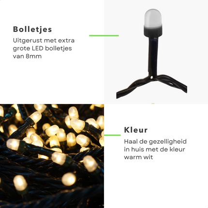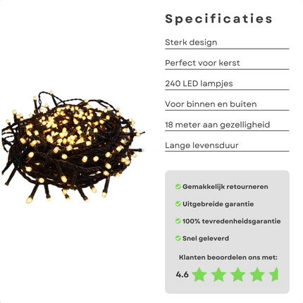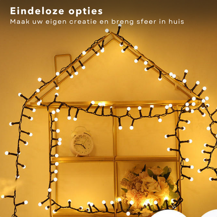 Cheqo® Kerstboomverlichting voor Binnen en Buiten - Kerstlampjes - Kerstbolletjes - Lichtbolletjes - Led Verlichting - Kerstverlichting - 240 LED - 18 Meter - Warm Wit