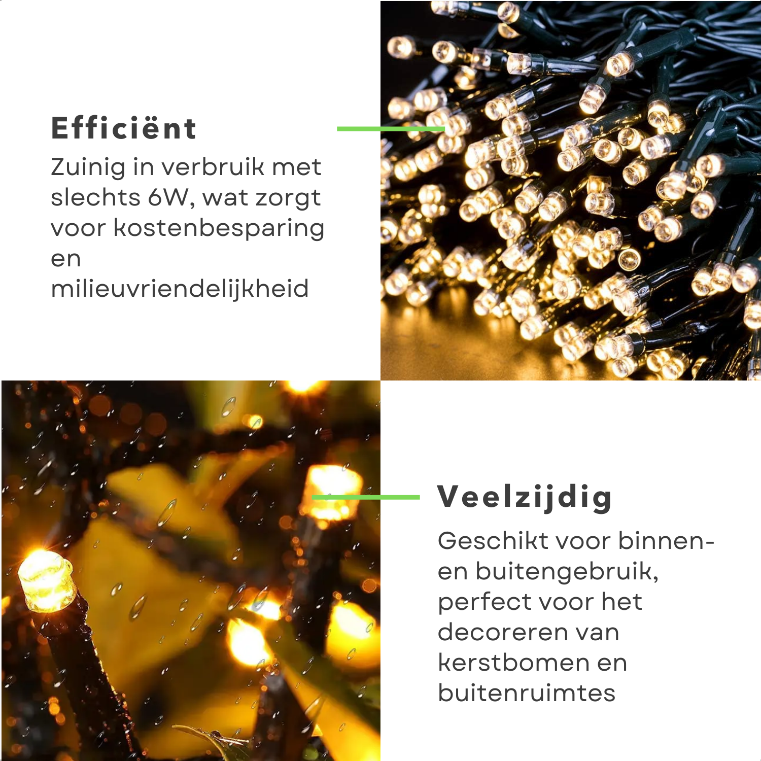 Cheqo® Kerstverlichting - Kerstboomverlichting - Kerstlampjes - Sfeerverlichting - LED Verlichting - Voor Binnen en Buiten - Tuinverlichting - Feestverlichting - Lichtsnoer- Microcluster - 1000 LED - 20M - Warm Wit - Timer - 8 Lichtfuncties