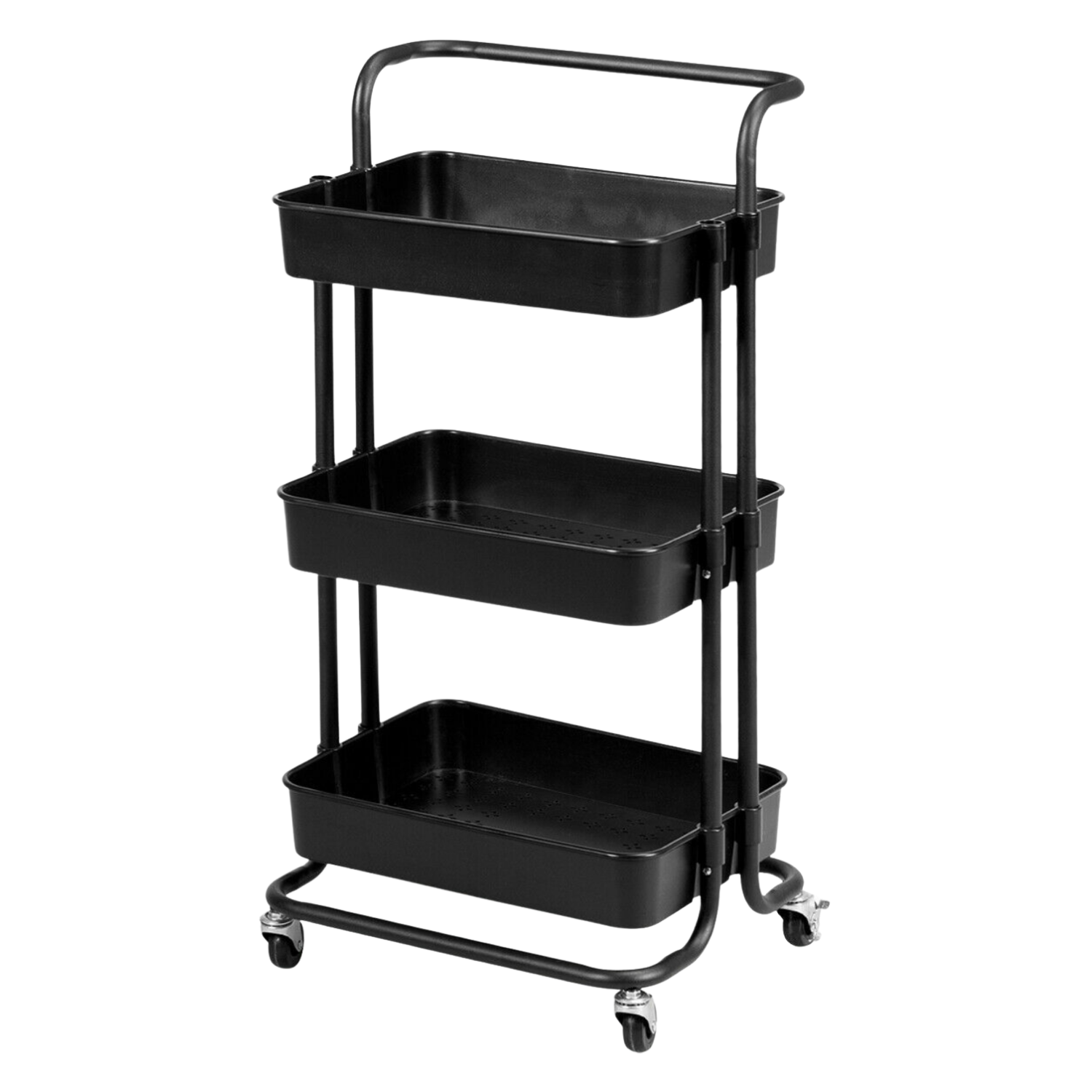 Cheqo® Keukentrolley - Metalen Serveerwagen - 3 Manden - 43x36x86 cm - Zwart