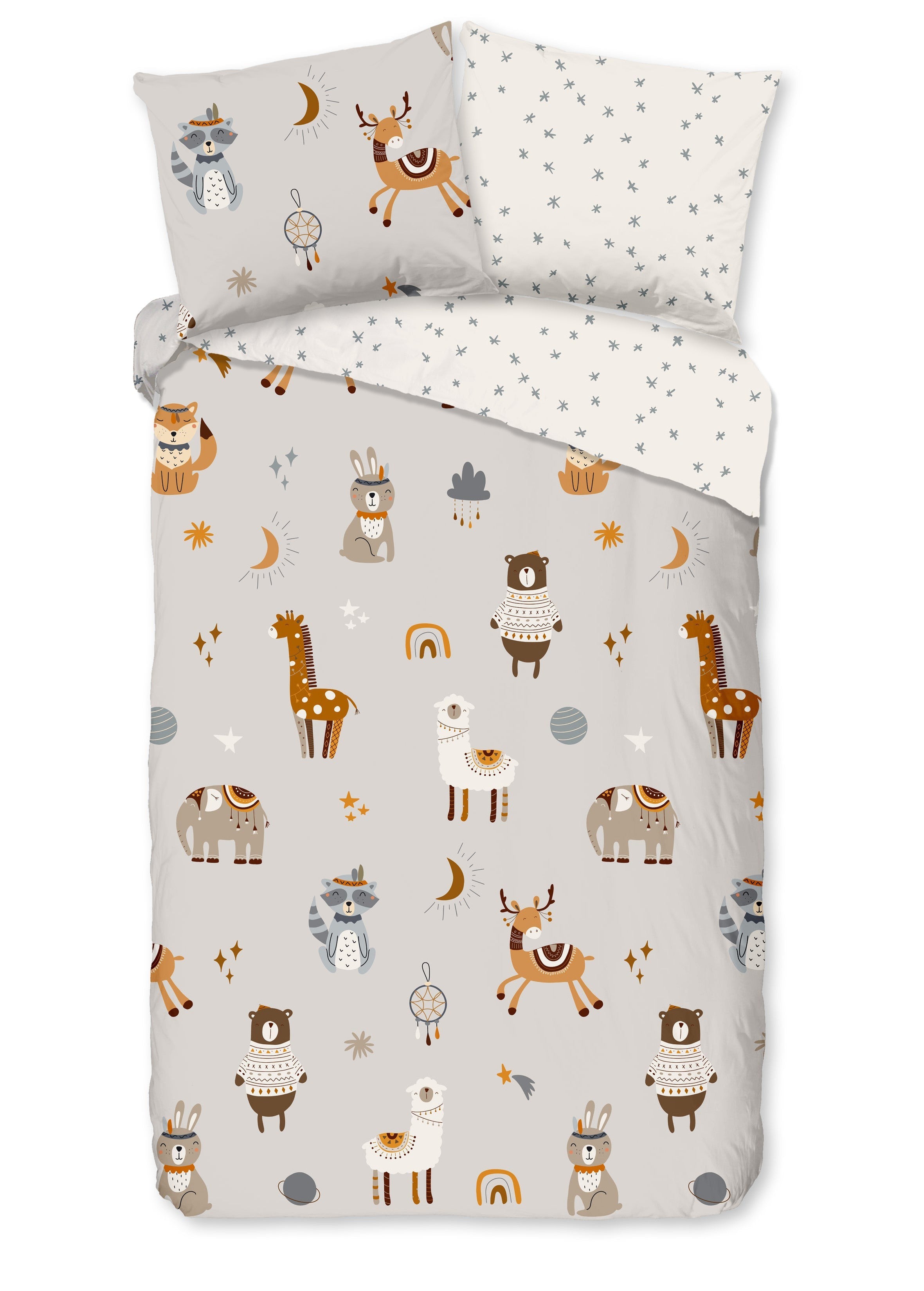 Kinderdekbedovertrek 140x200/220 cm - Dieren Print - Multi - 1 Persoons - 100% Katoen - Oeko-Tex Gecertificeerd
