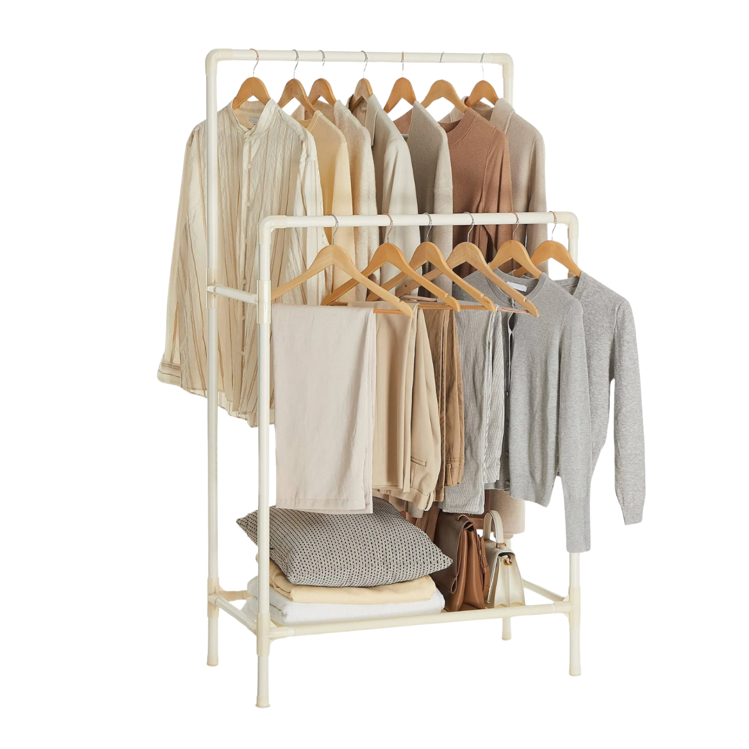Cheqo® Kledingrek - Garderoberek met Metalen Frame - 80x43x147 cm - Wit - Eenvoudig te Monteren - Met Schap voor Schoenen