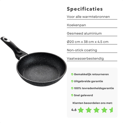 Cheqo® Koekenpan - Bakpan - Gesmeed Aluminium - ø20cm - Voor Alle Kookplaten - Ook voor Inductie