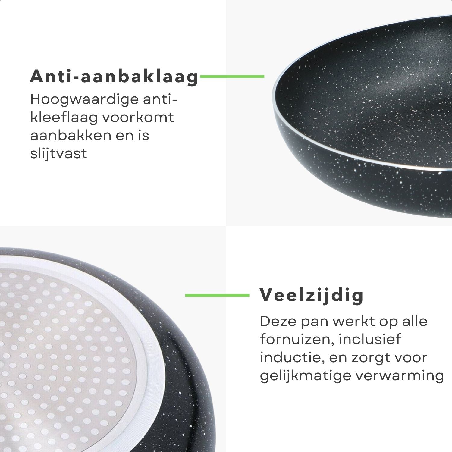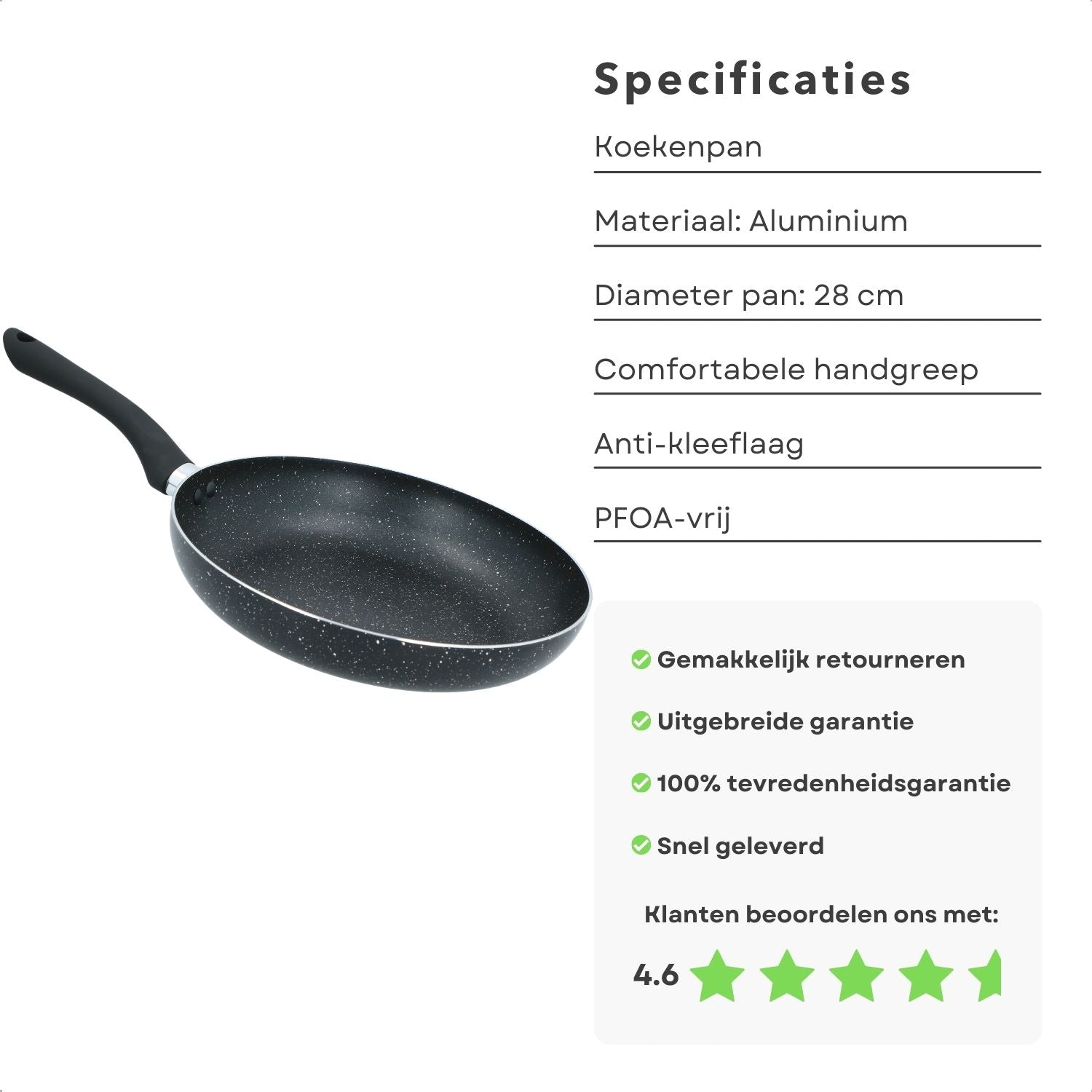 Cheqo® Koekenpan Ø28cm - Soft Touch Handgreep - Gelijkmatige Warmteverdeling - Pannen - Bakpan - Lange Levensduur - Aluminium - Voor Alle Warmtebronnen