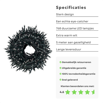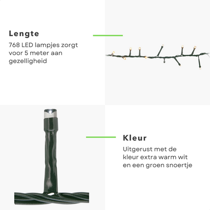 Cheqo® Koppelbare Kerstboomverlichting - Clusterverlichting - Kerstlampjes - Led Verlichting - Kerstverlichting voor Binnen en Buiten - 768 LED - 5.5m - Extra Warm Wit