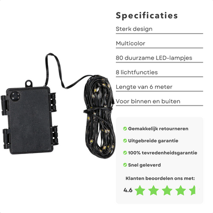 Cheqo® LED Verlichting 80 LED - 6m - Multicolor - 8 Lichtfuncties - Soft Wire - 3m Aanloopsnoer - Feestverlichting - Kerstverlichting - Tuinverlichting - Buitenverlichting - Gekleurde Kerstverlichting - Voor Binnen en Buiten