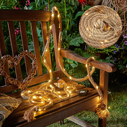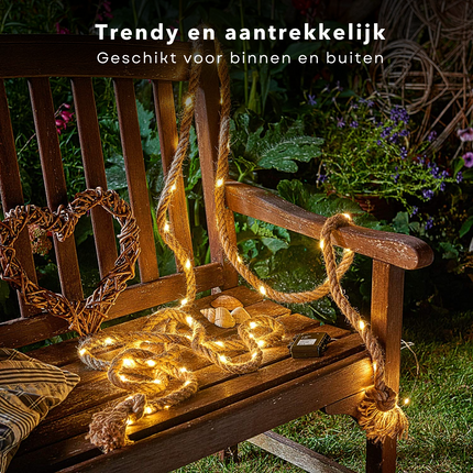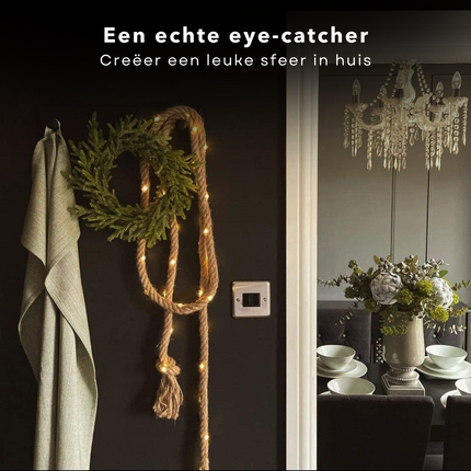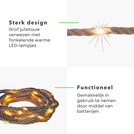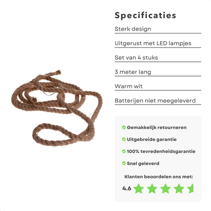 Cheqo® Lichtslang van Jute - Jute Touw - Touw met LED - Lichtsnoer Touw - Touwverlichting - Kerstverlichting - 3 Meter - Op Batterijen - 4 Stuks