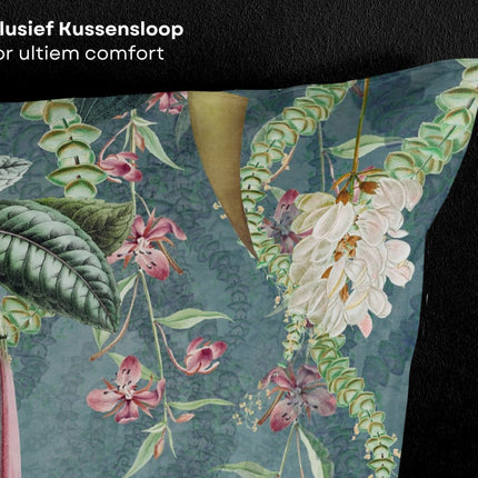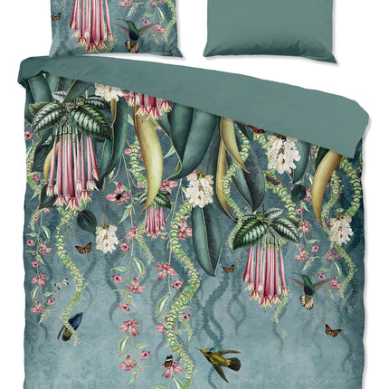 Luxe Dekbedovertrek 200x220 cm - Bloemen en Bladeren Print - Groen/Multicolor - 2 Persoons - Microfiber