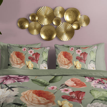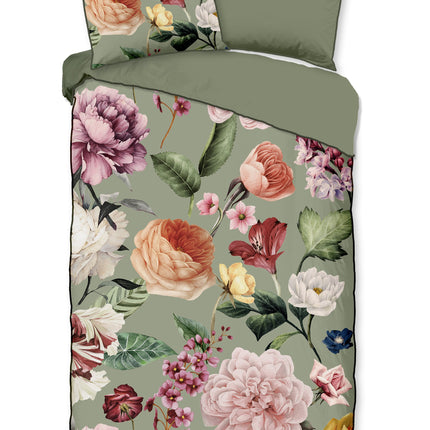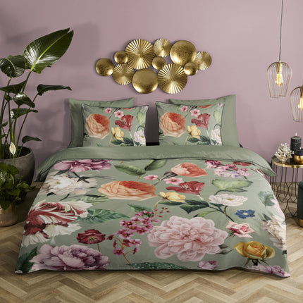 Luxe Satijnen Dekbedovertrek 140x200/220 cm - Bloemenprint - Groen - 2 Persoons - 100% Katoen-Satijn