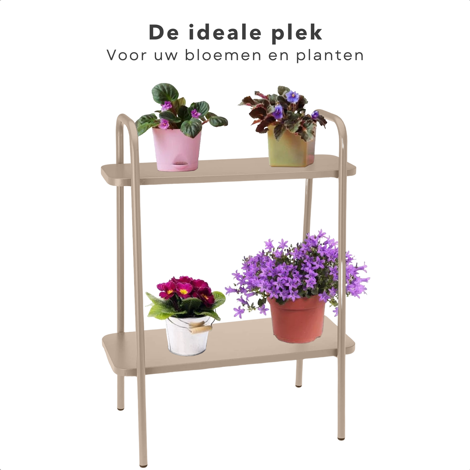 Stijlvol bloemenrek Het Bloemenrek - taupe is een stijlvolle toevoeging aan elke tuin of terras. Het metalen frame is gepoedercoat... Lees meer