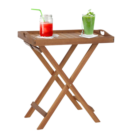 Cheqo® Opvouwbare Acacia Bijzettafel - Multifunctionele Tafel - Tuintafel - Tafeltje voor Buiten - Tuinset Tafel - Houten Opklapbare Dienbladtafel voor Huis en Tuin - 60 x 42 x H65 cm - 4 kg