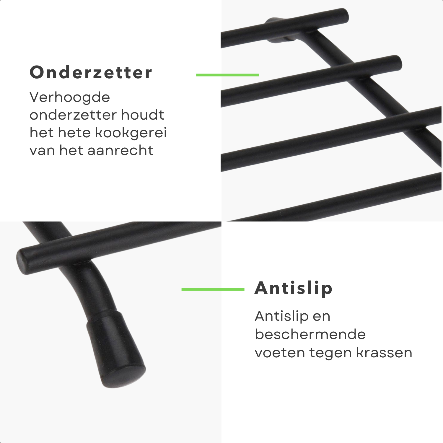 Cheqo® Pannenonderzetter - Panonderzetter - Pannen Onderzetter - Staal - Rechthoek 35x20cm - Met Bescherm Pootjes