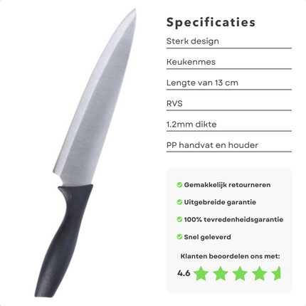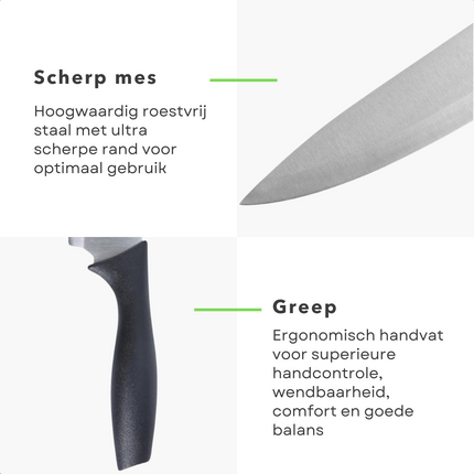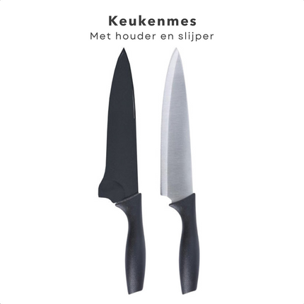Cheqo® PRO Koksmes met Messenslijper - Slijper - Keukenmes - 1.2mm Dikte - Pp Heft en Houder