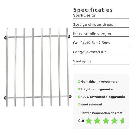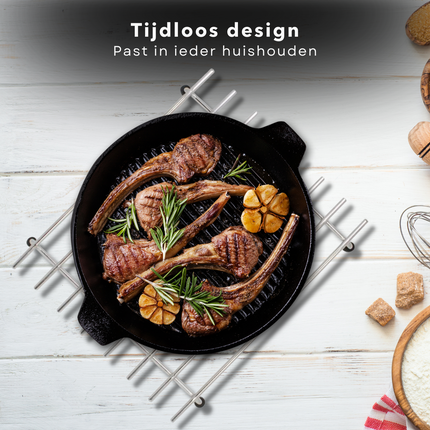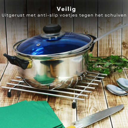Cheqo® PRO Onderzetter voor Pannen - Panonderzetter - Hittebestendig - Stevig Chroomdraad - Antislip-Voetjes - 24x19,5xH2,5cm