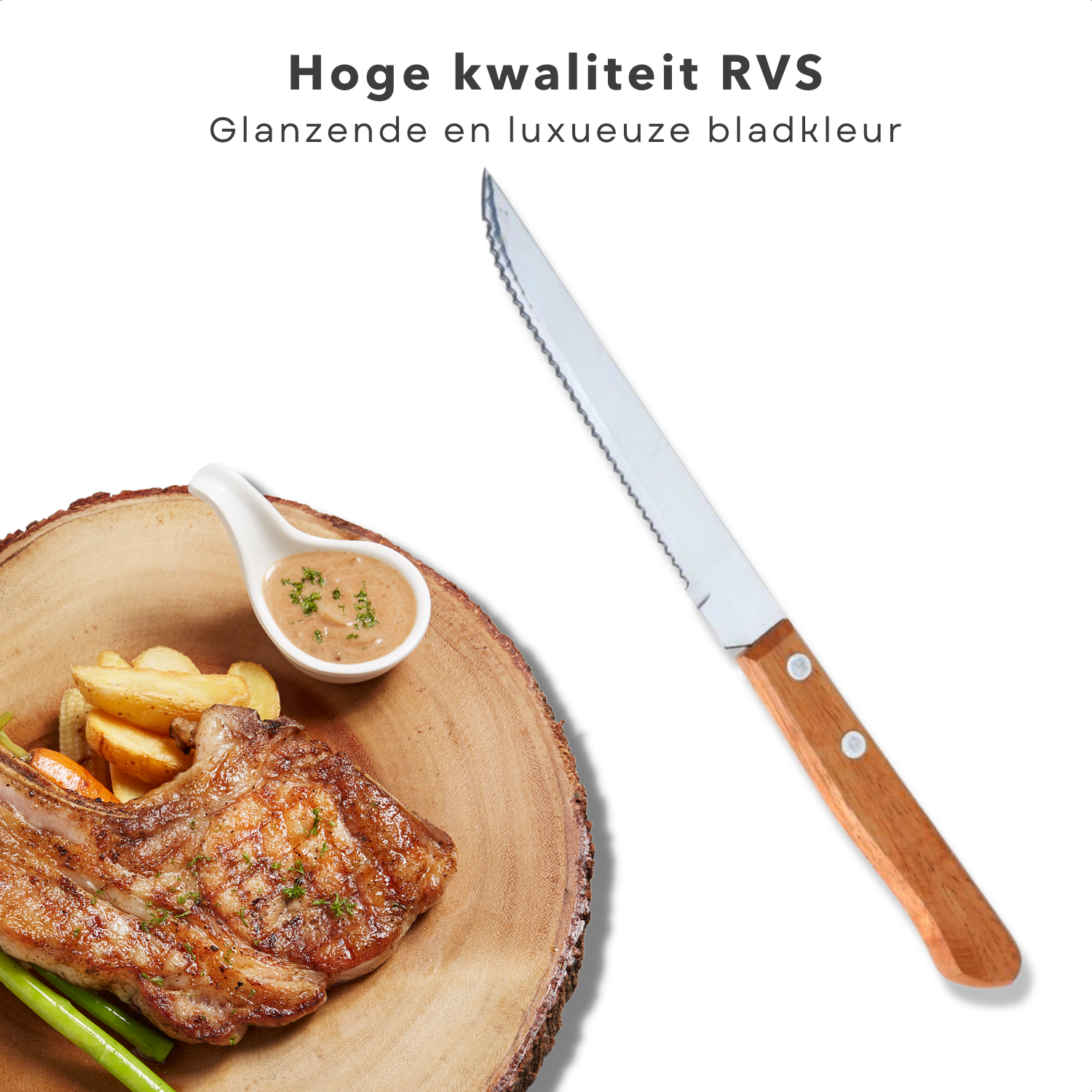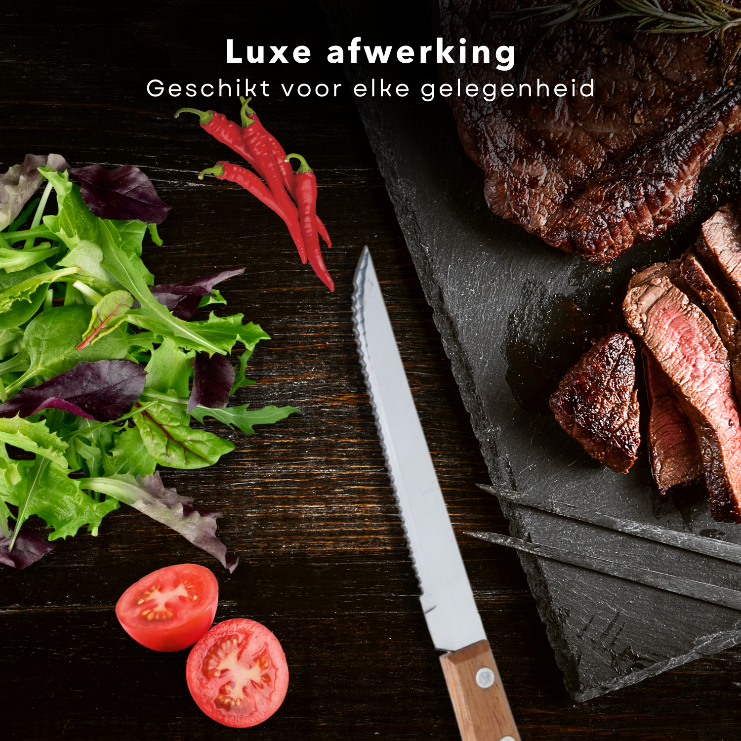 Cheqo® RVS Steakmessen Set - Messenset - Tafelmessen - Vleesmessen - Steakmessenset - Vaatwasserbestendig - 6 Stuks - 21 cm