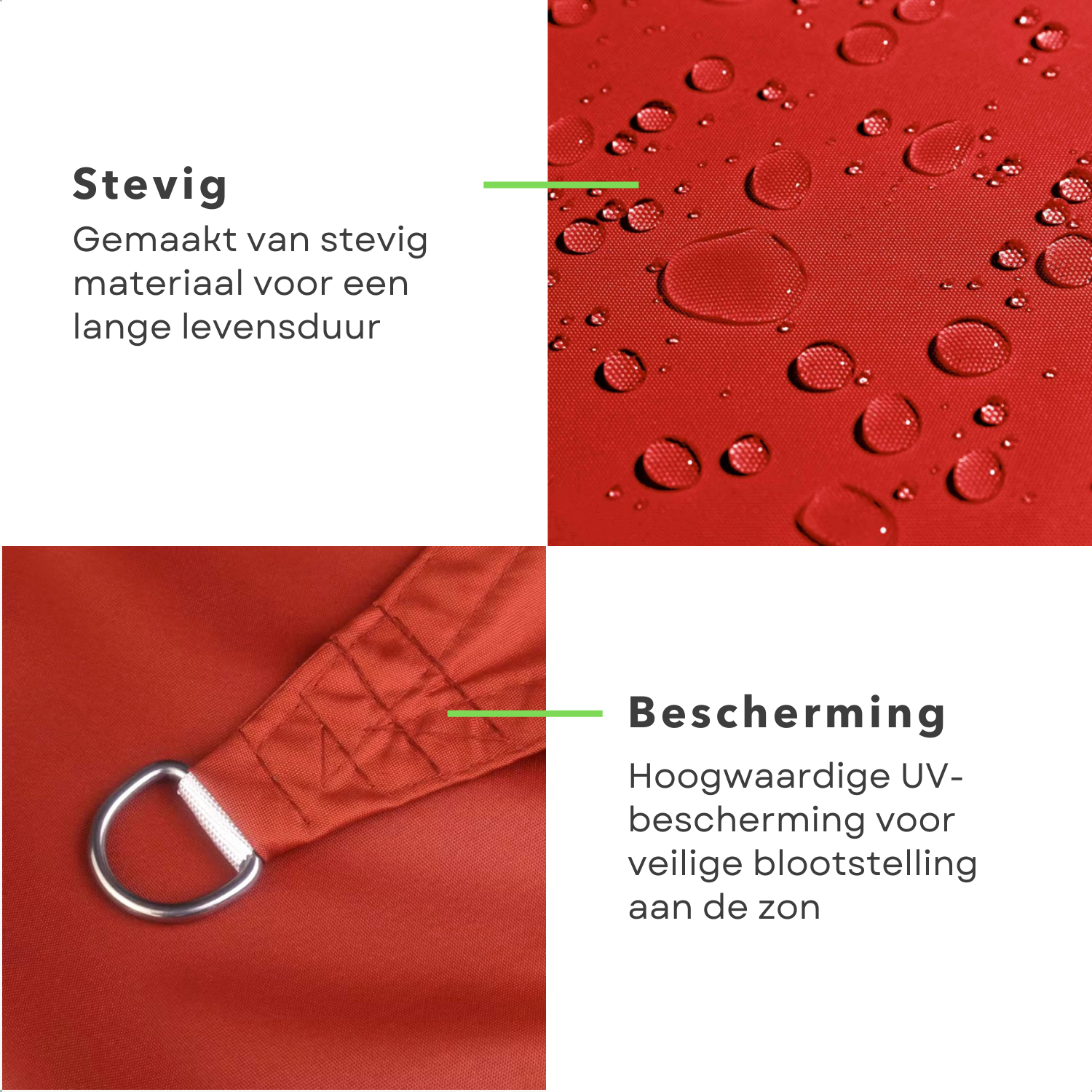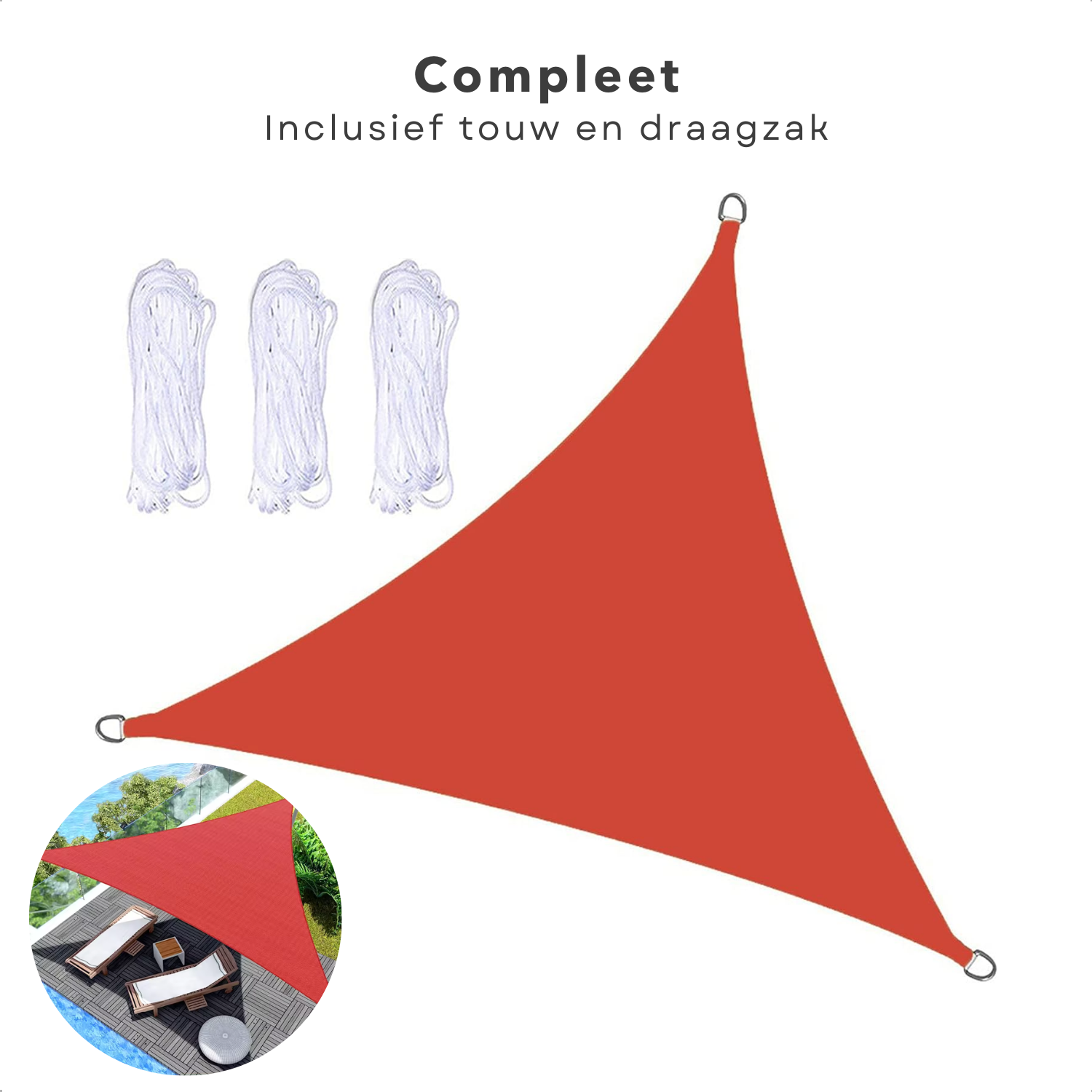 Cheqo® Schaduwdoek Driehoek - Terra Rood - Waterafstotend Polyester 100% - Compleet met Touw - Verpakt in Afsluitbare Draagzak - 360x360x360cm