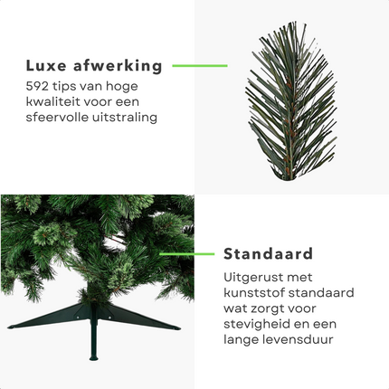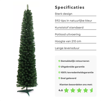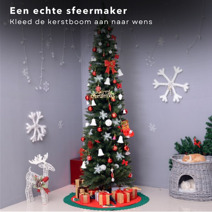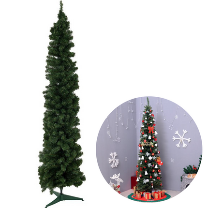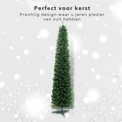 Cheqo® Smalle Kerstboom - Kunstkerstboom Smal - Kerstdecoratie - 592 Takken - Inclusief Standaard - Hoogte 210 cm