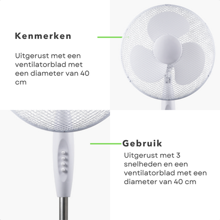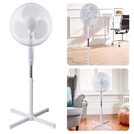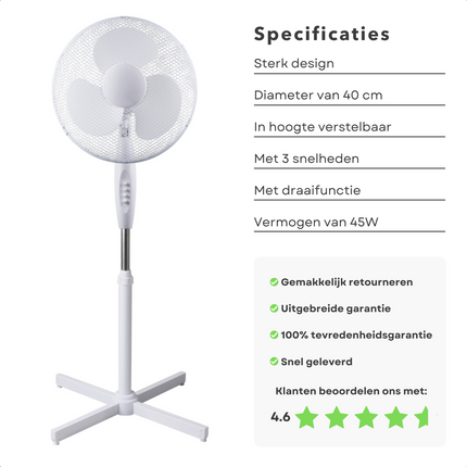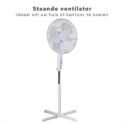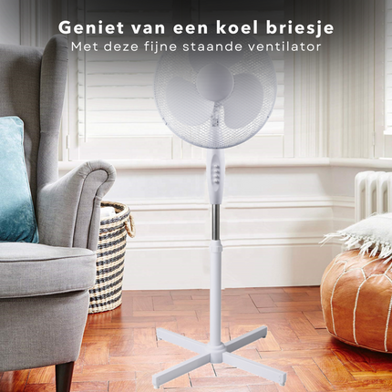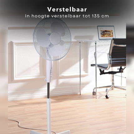 Cheqo® Staande Ventilator - Fan - Statiefventilator - Luchtkoeler - 40cm - 45W - 3 Snelheden - Verstelbaar - Draaifunctie - 140cm Snoerlengte