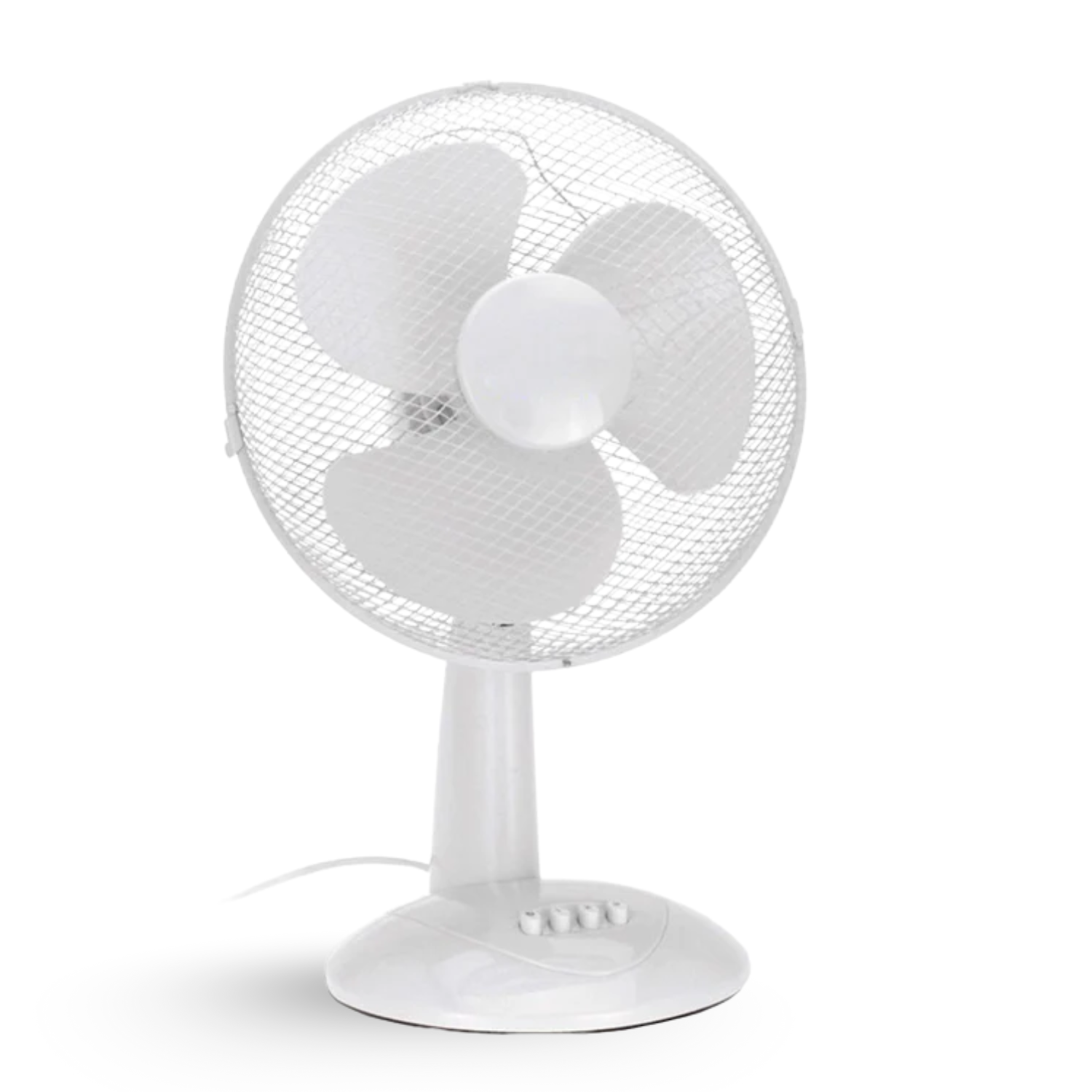 Cheqo® - Stabiele Tafelventilator - Ventilator - Fan - 45W - 3 Snelheden - Draaibaar & Kantelbaar - 30cm Diameter - Wit - Voor op Kantoor - Voor Thuis - Metaal - Staande Ventilator