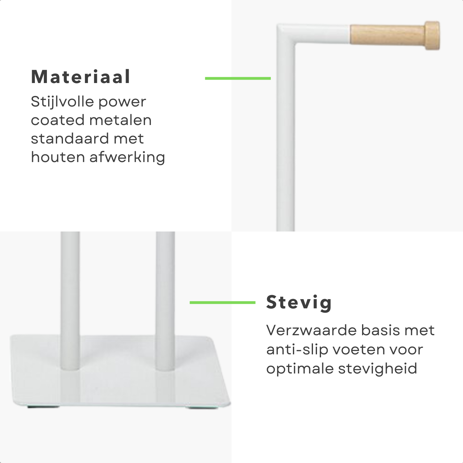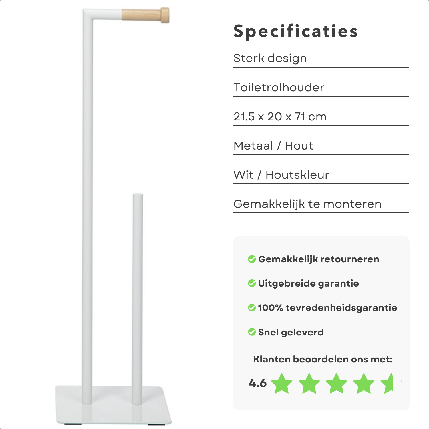 Cheqo® Toiletbutler - Toiletrolhouder - Rollenhouder - Standaard van Metaal en Houten Afwerking - 21,5 x 20 x 71 cm - Eenvoudig in Elkaar te Zetten