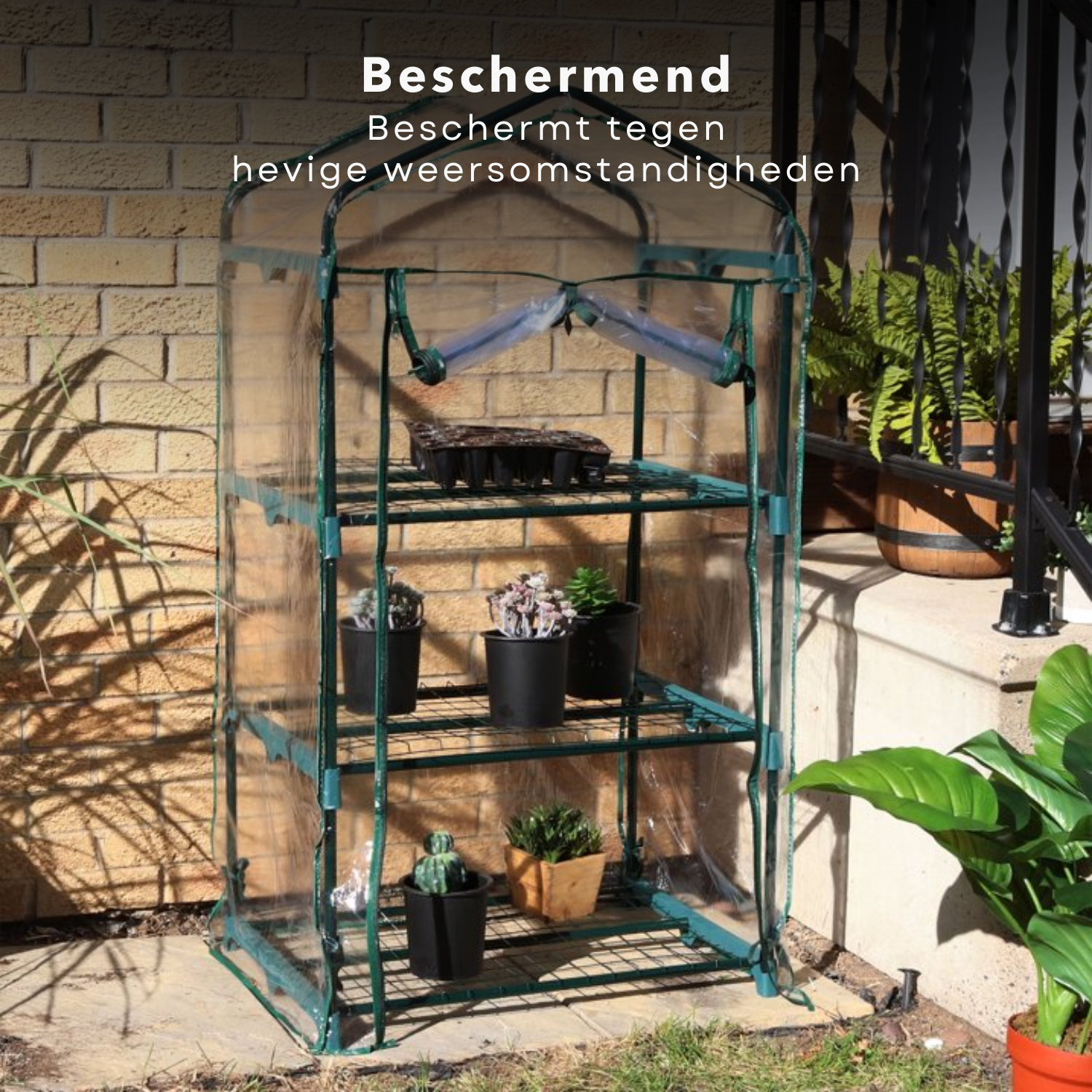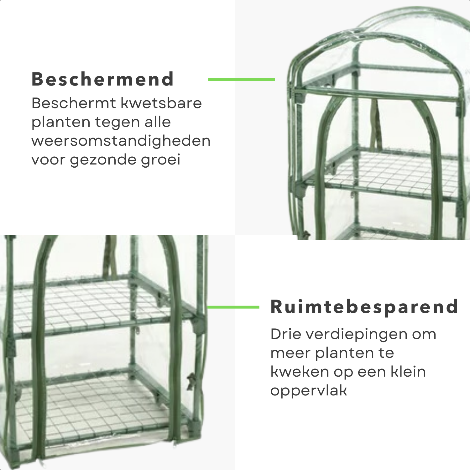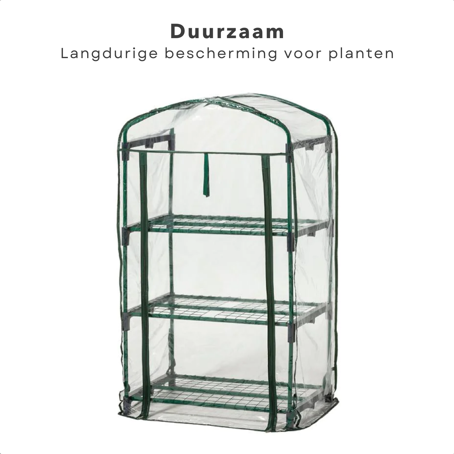 Cheqo® Transparante Tuinkas - Kweekkas - Broeikas met 3 Verdiepingen - Roldeur - 50x45x105 cm - Plantenkas voor Buiten
