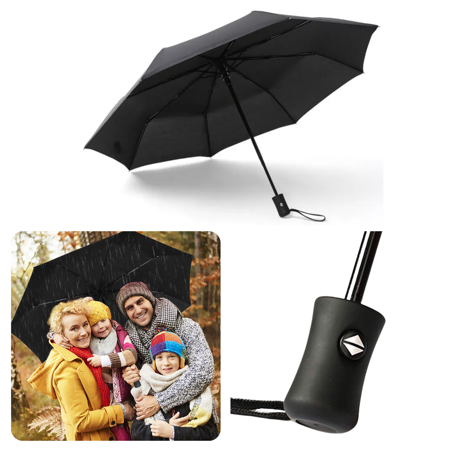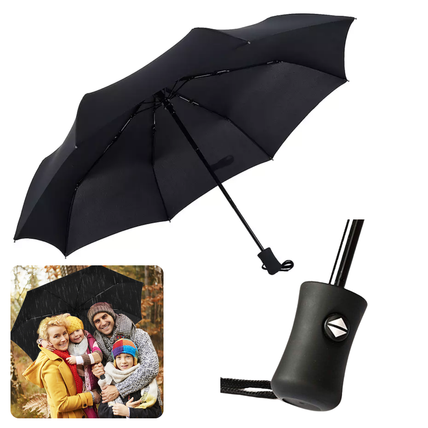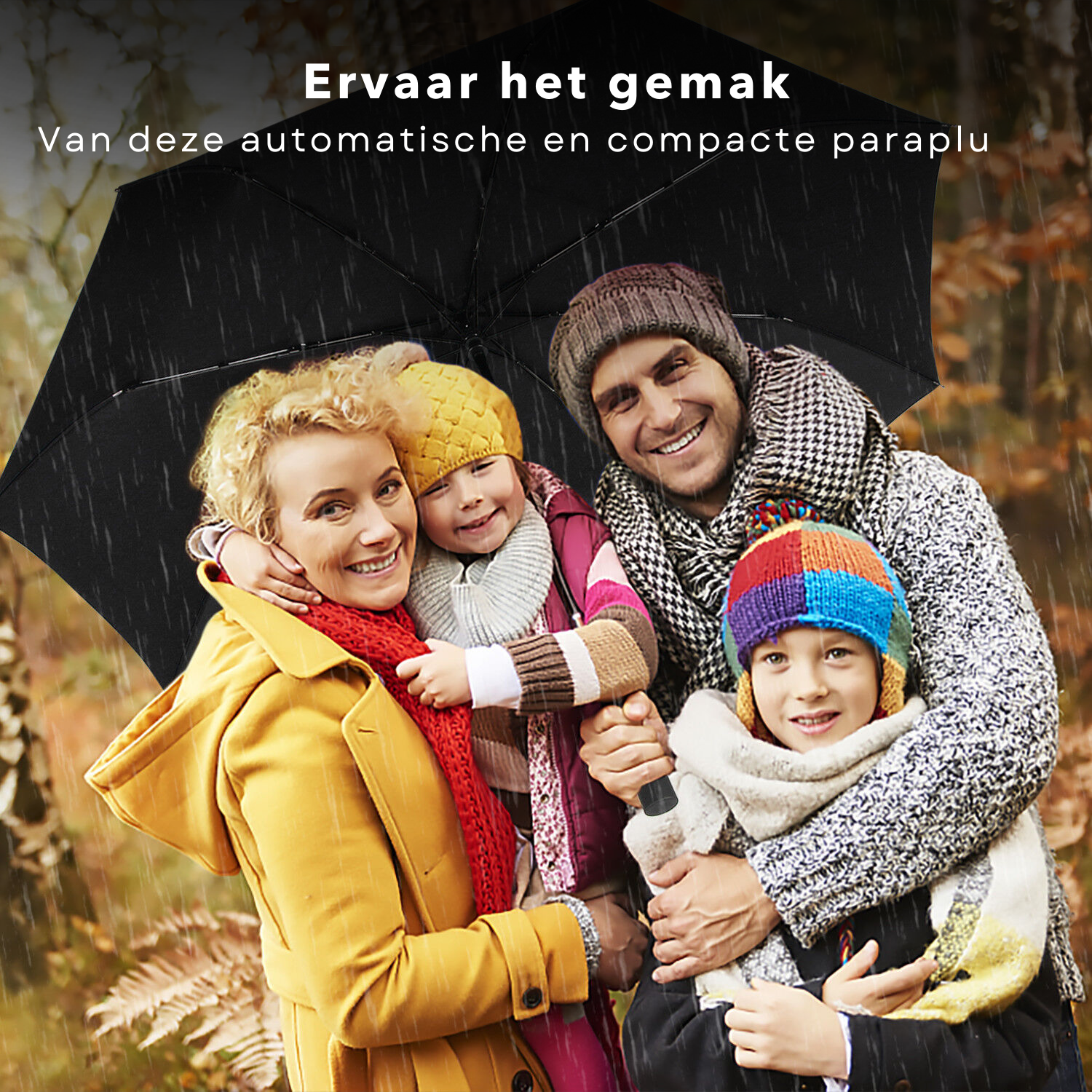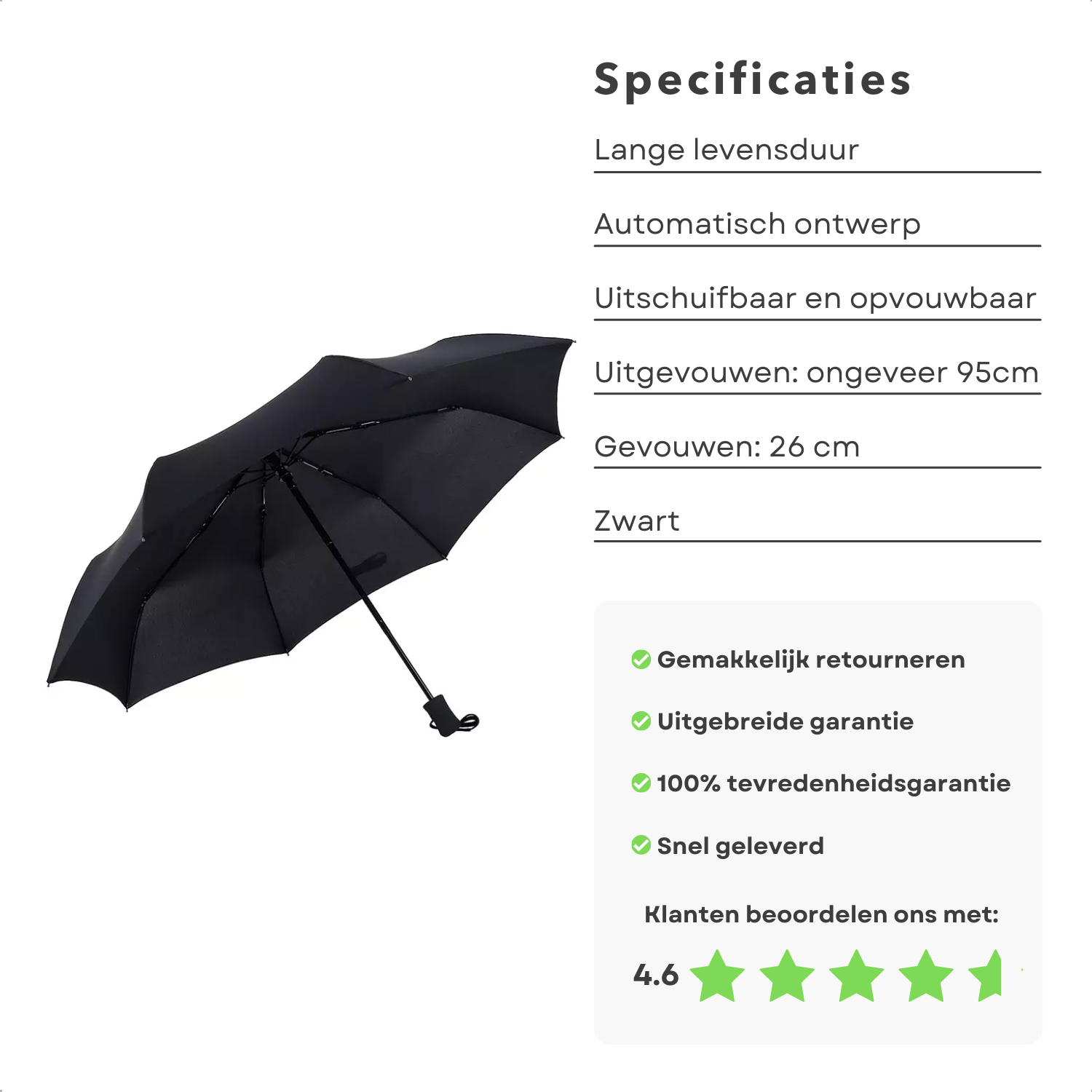 Cheqo® Vol-Automatische Paraplu - 95cm Diameter - Opvouwbaar - Automatisch Uitklapbaar - Drukknop Openen/Vouwen - Zwart