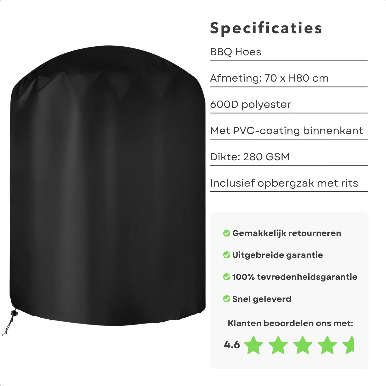 Cheqo® Waterdichte Afdekhoes voor Barbecue - Zware Kwaliteit - UV-Bestendig - Bescherming tegen Regen en Vuil - 70 x 80 cm - 600D Polyester - PVC Coating - Zwart - Opberghoes - BBQ Accessoires - BBQ Hoes - Lange Levensduur - Voor Ronde Barbecue