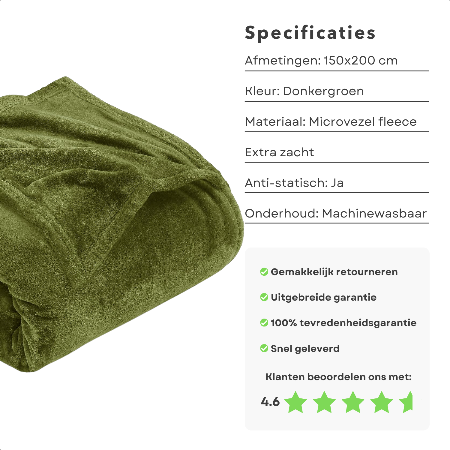 Cheqo® XL Warme en Zachte Fleece Deken - 150 x 200 cm - Donkergroen - Fleece Deken - Fleece Plaid - Super Zacht - Plaid voor op de Bank - Bed - Woonkamer - Decoratie Plaid