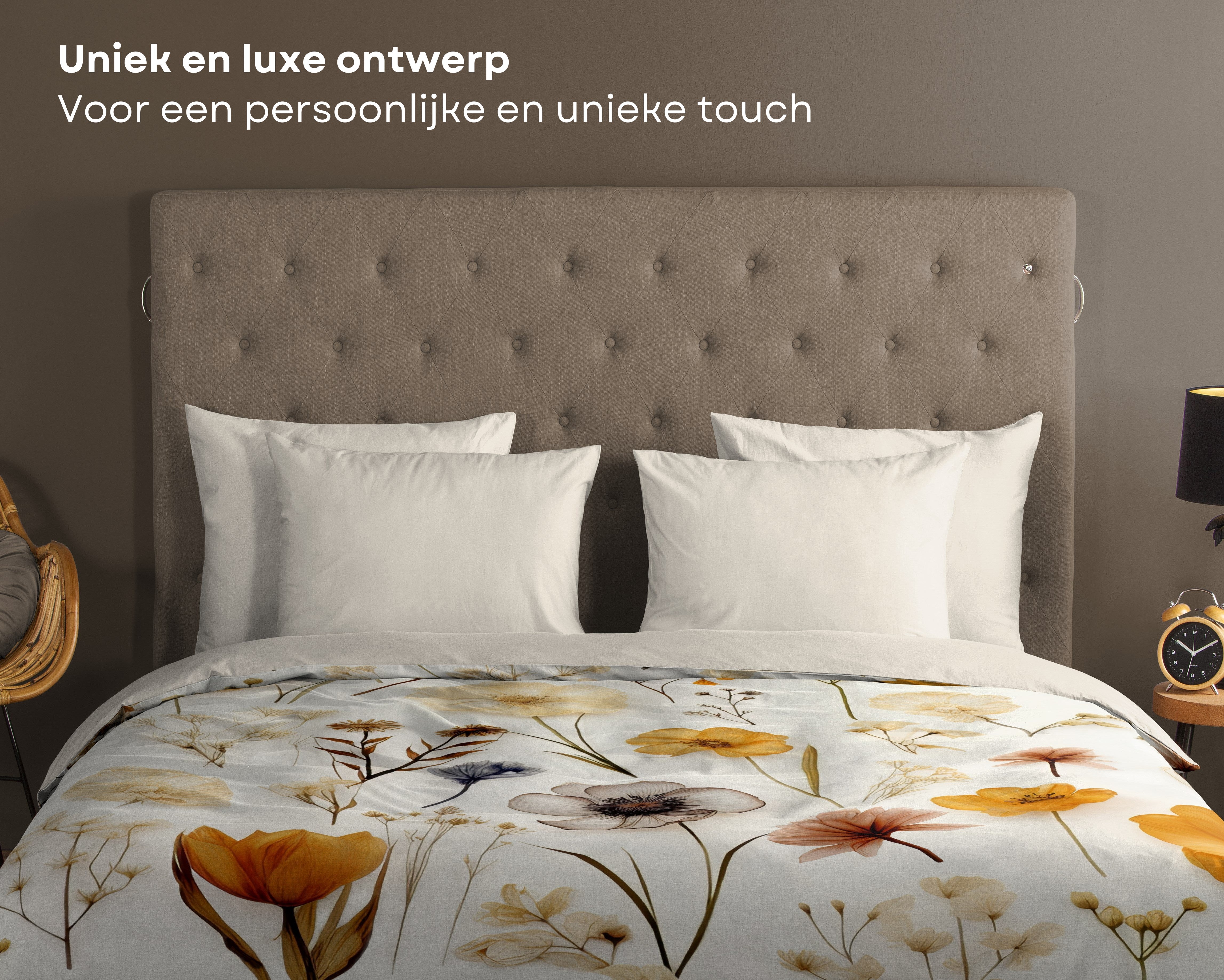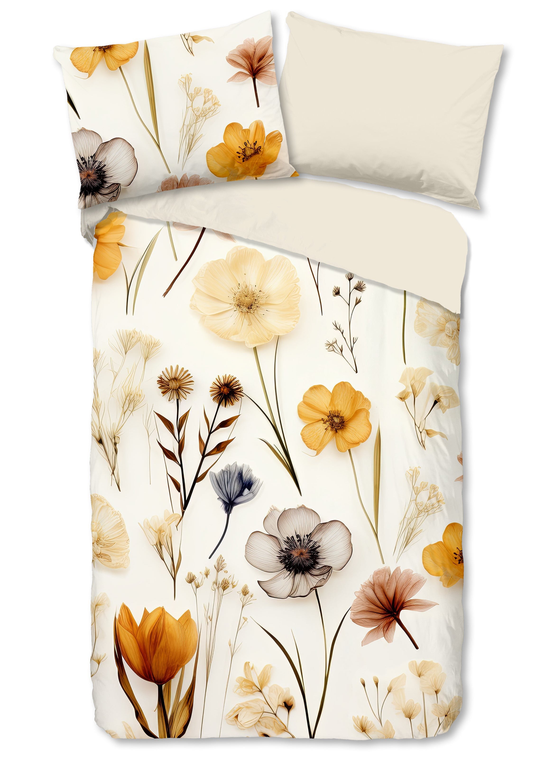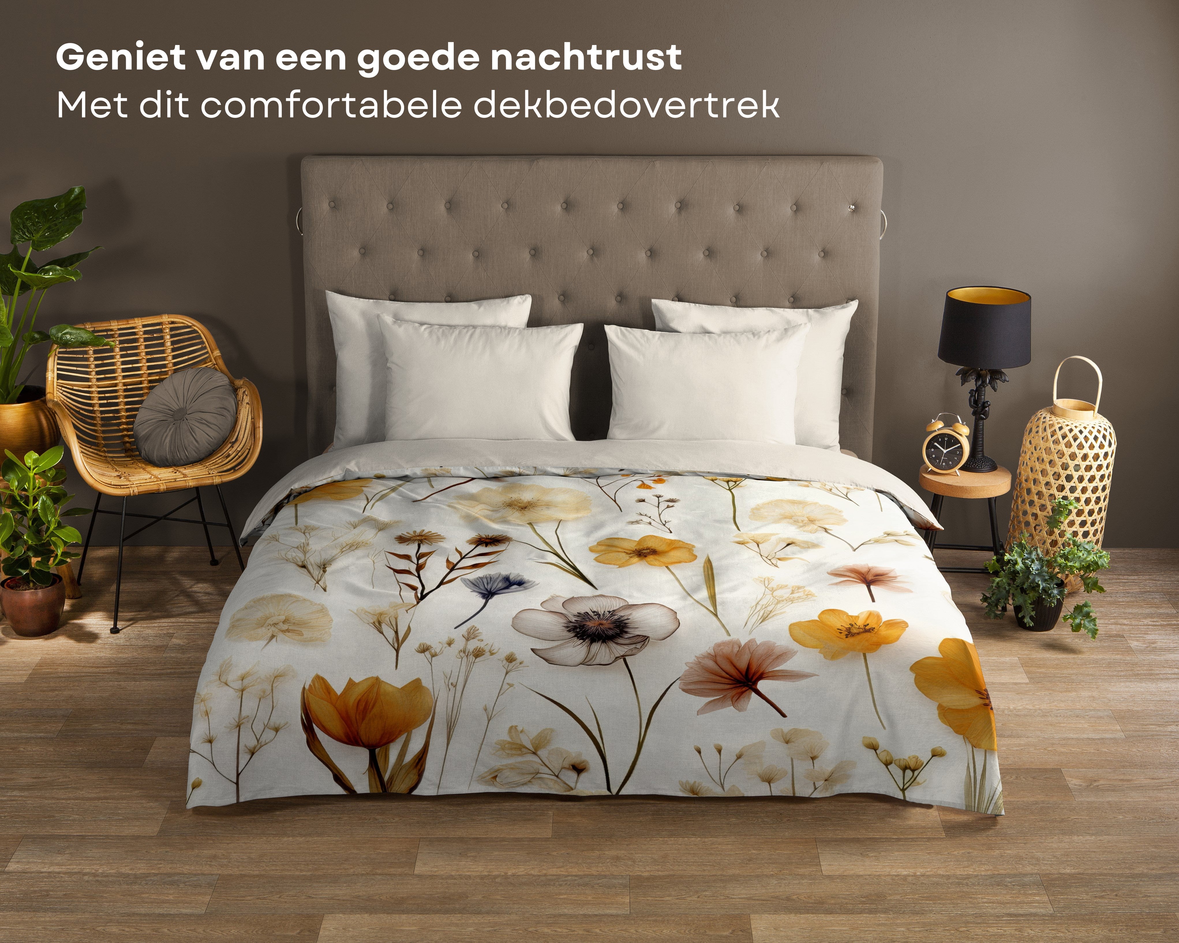 Dekbedovertrek 140x200 cm - Rustige Bloemen Print - Geel/Crème - 1 Persoons - 100% Katoen - Oeko-Tex Gecertificeerd