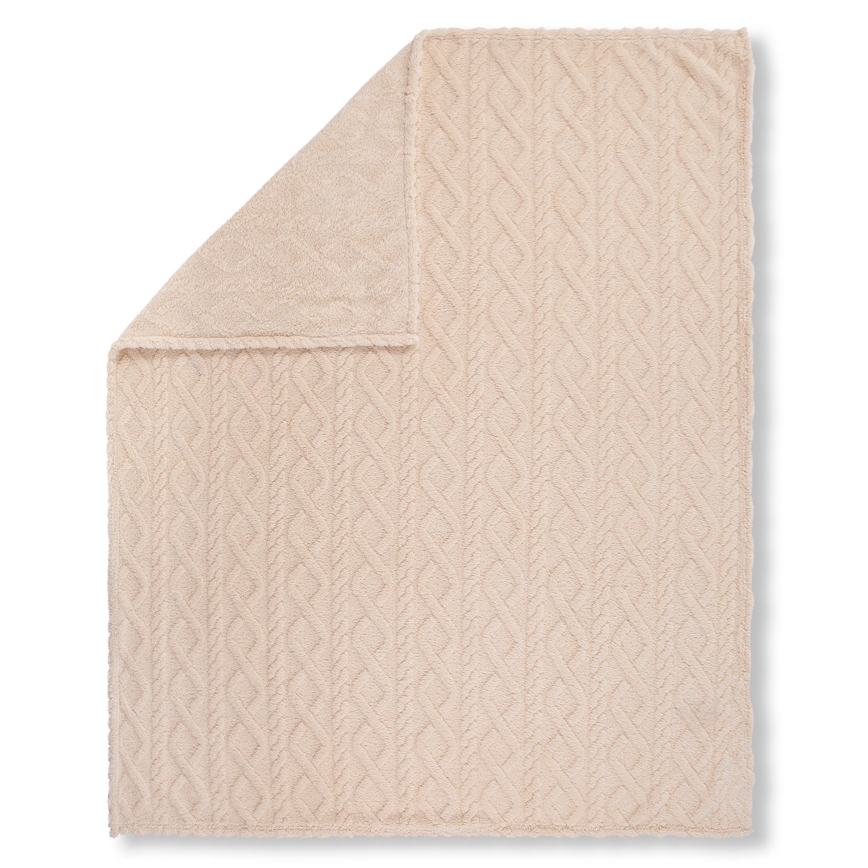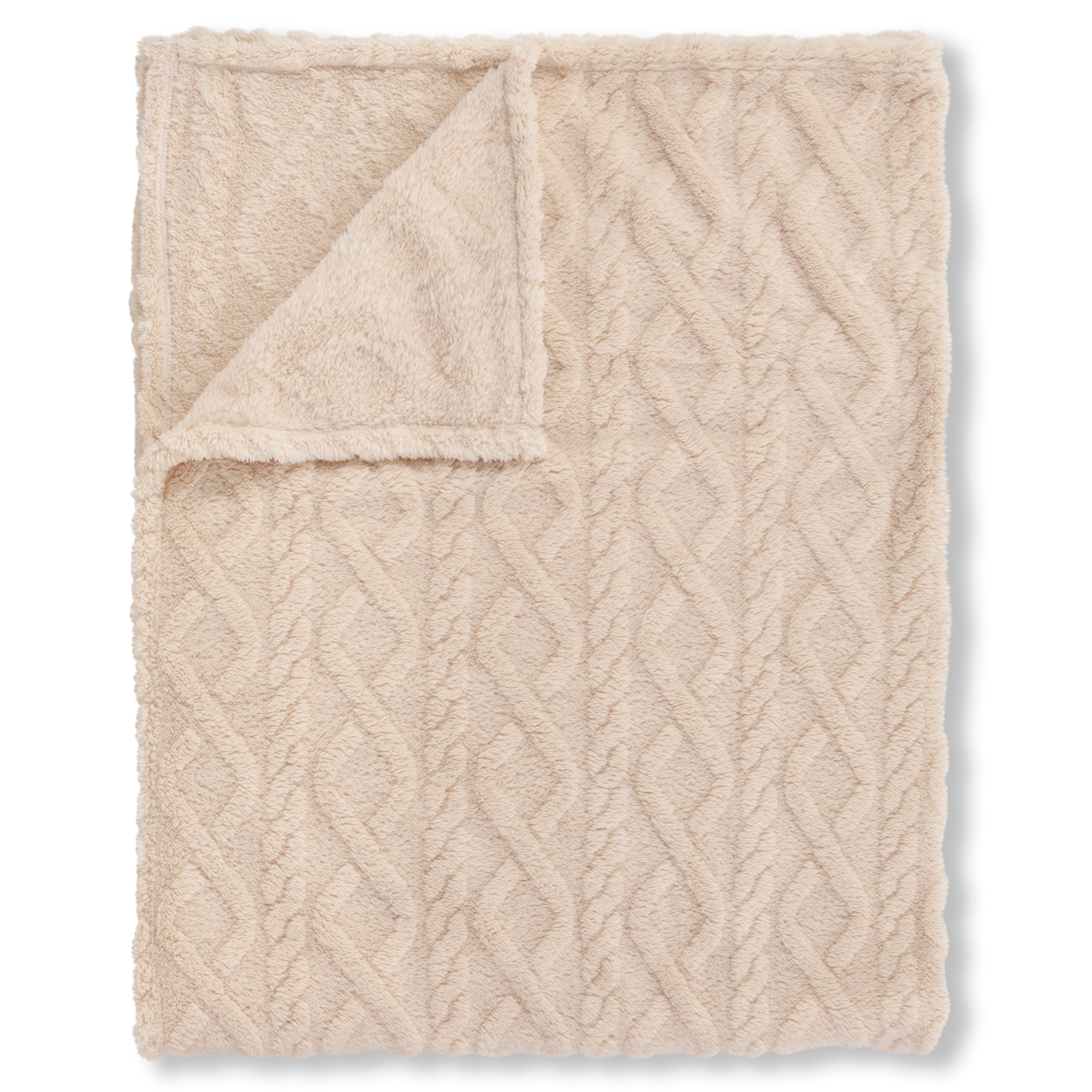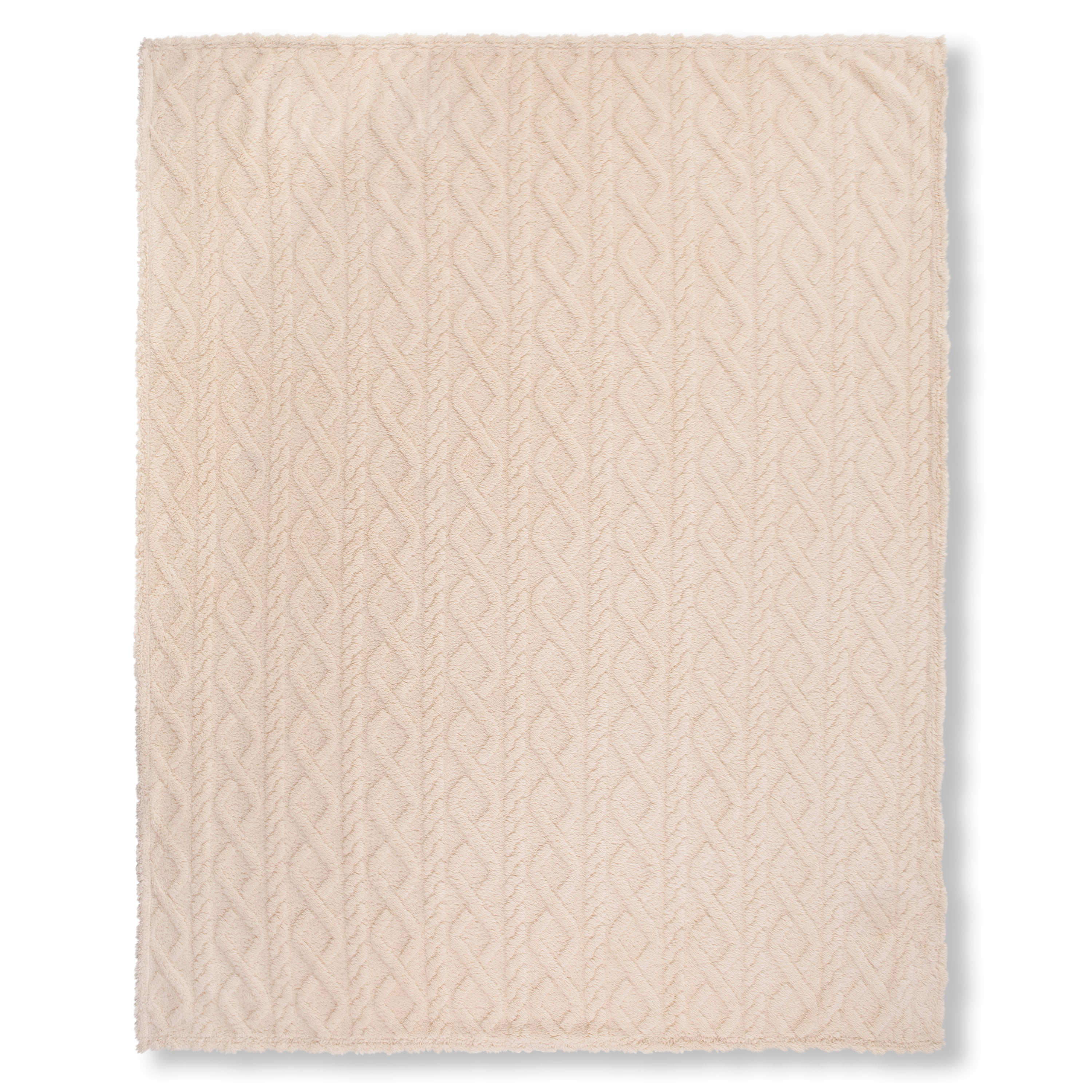 Luxe Teddy Plaid - Deken - Dekentje 130x160 cm - Jacquard Geweven Kabelpatroon - Off-White - 1 Persoons - 100% Polyester Sherpa - Oeko-Tex Gecertificeerd