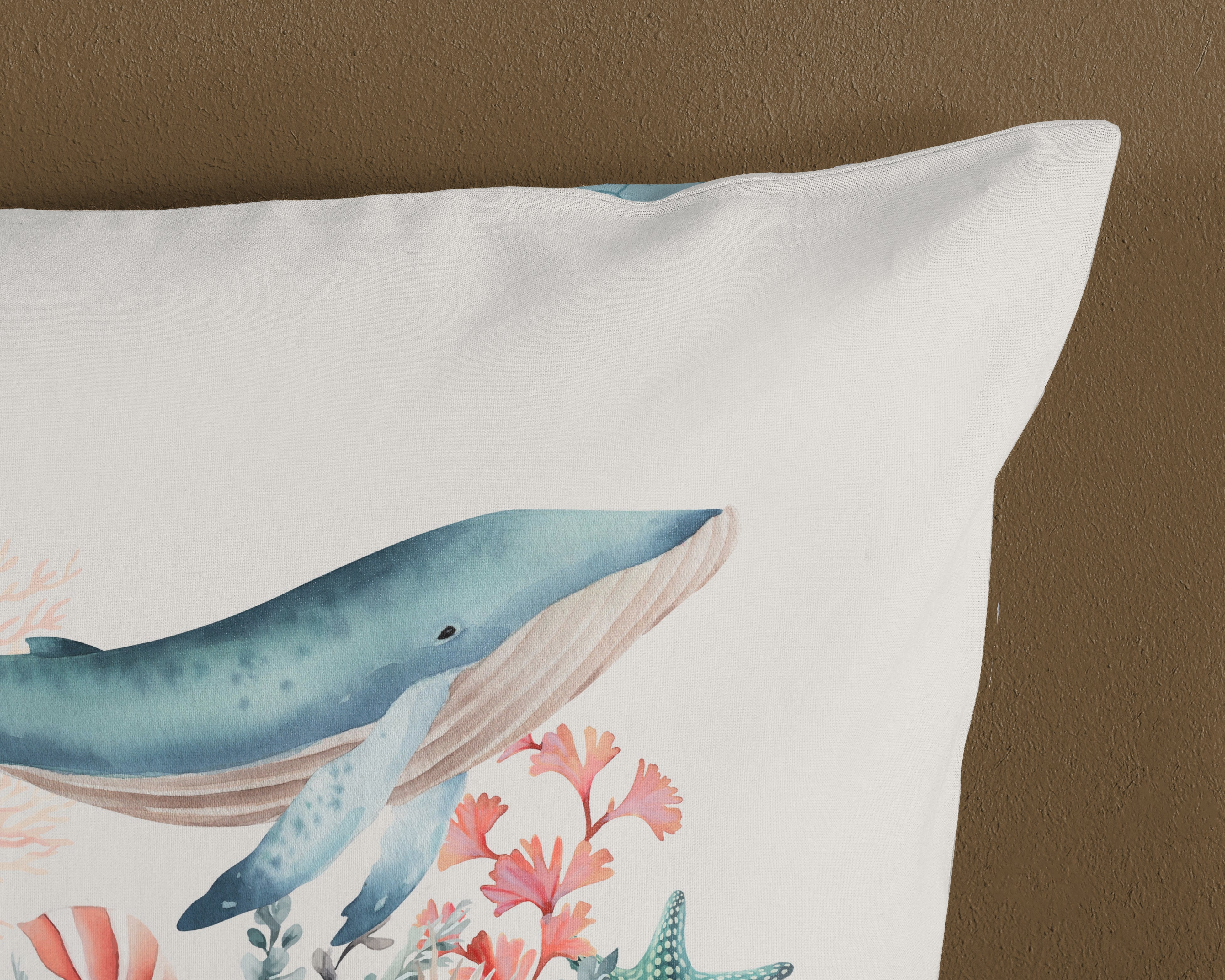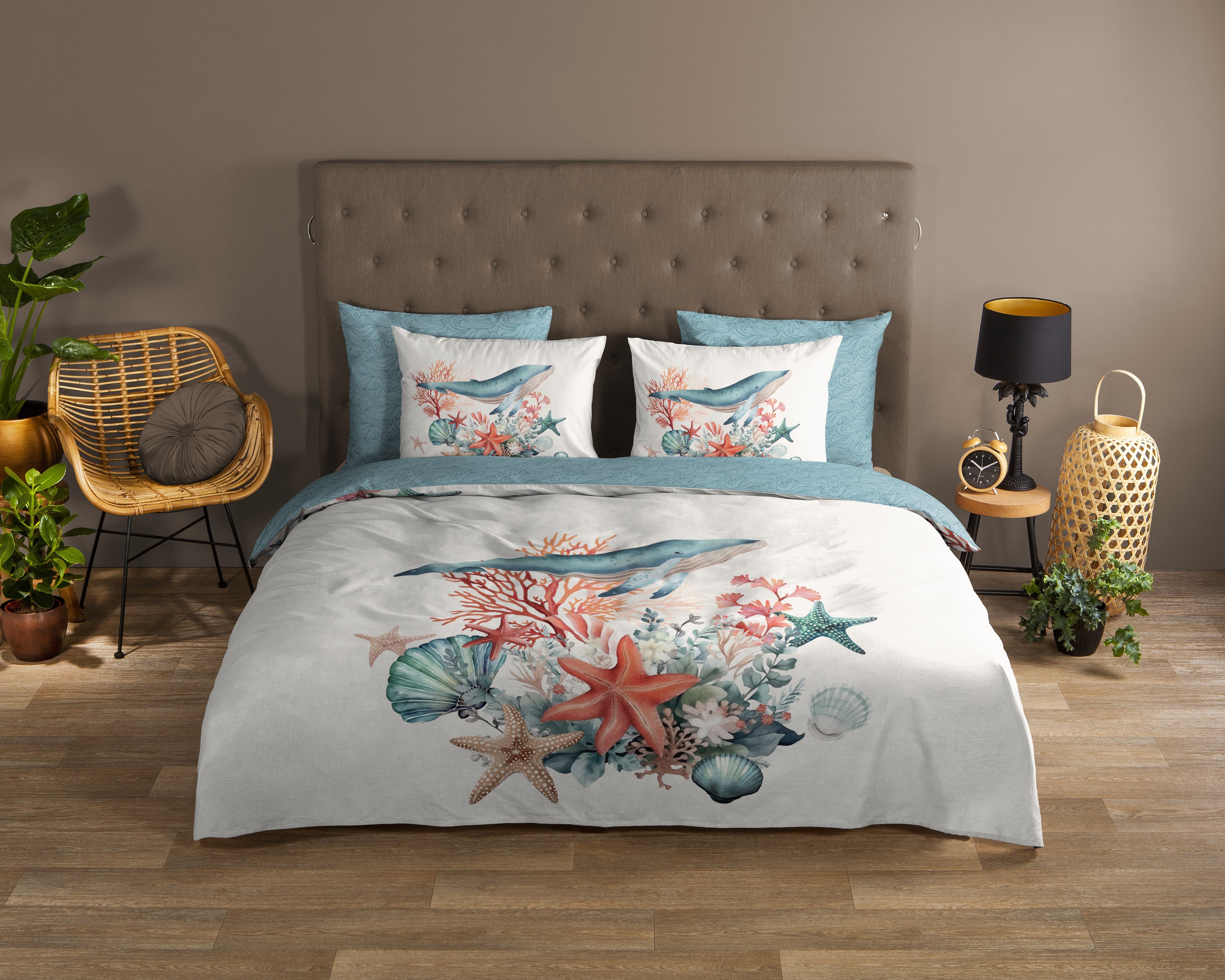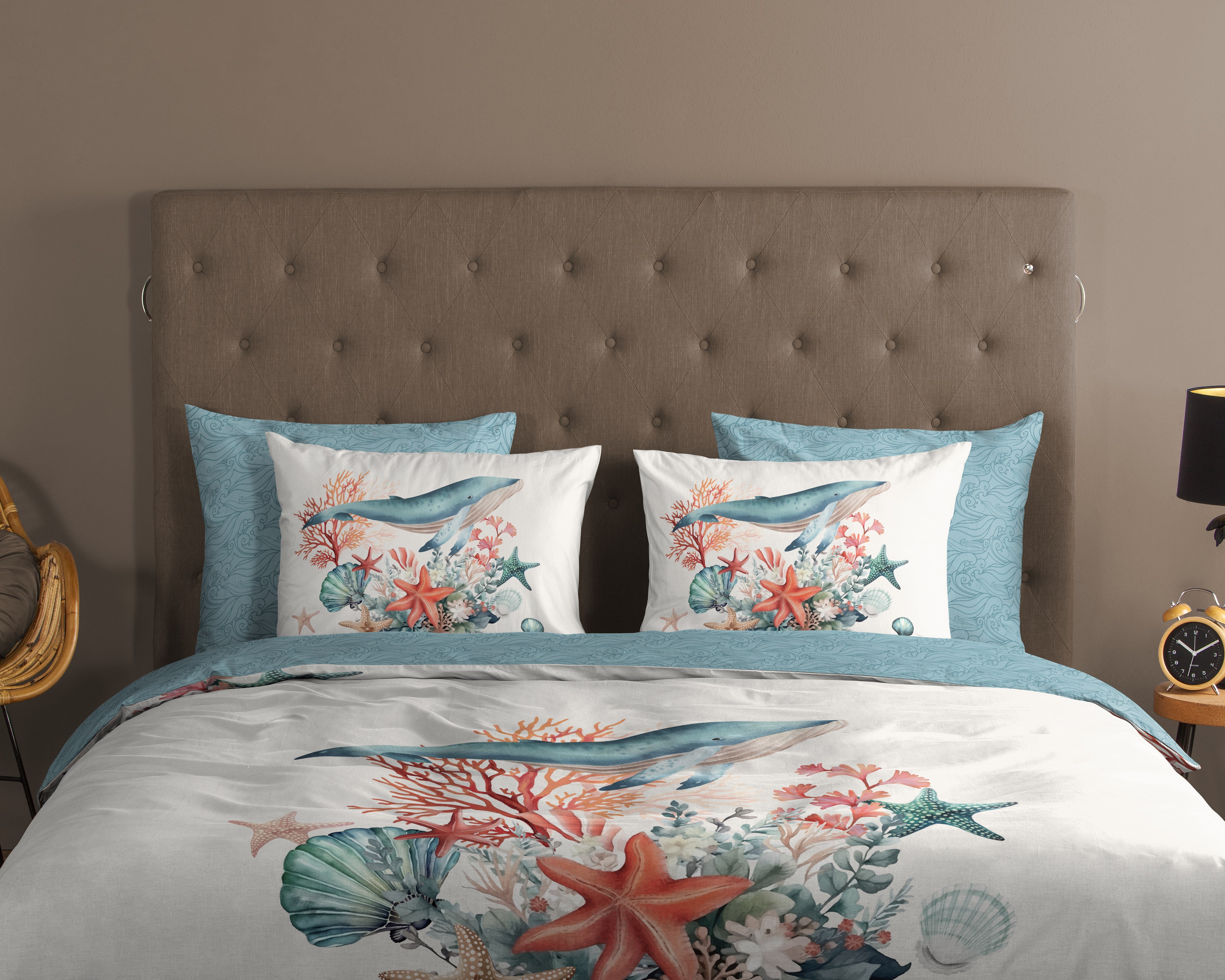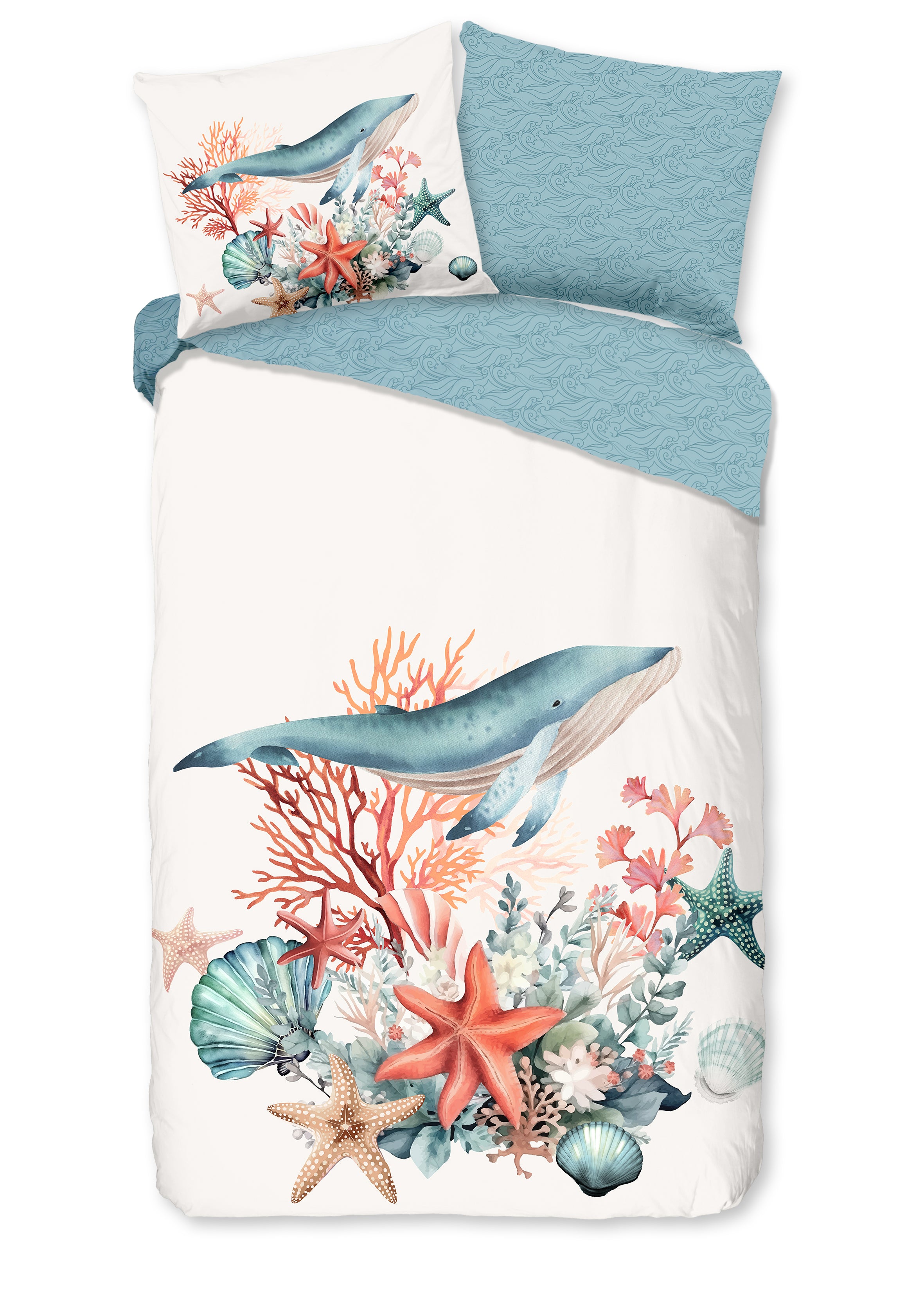 Dekbedovertrek 140x220 cm - Oceaan Thema met Walvis en Koraal - 1 Persoons - 100% Katoen - Oeko-Tex Gecertificeerd